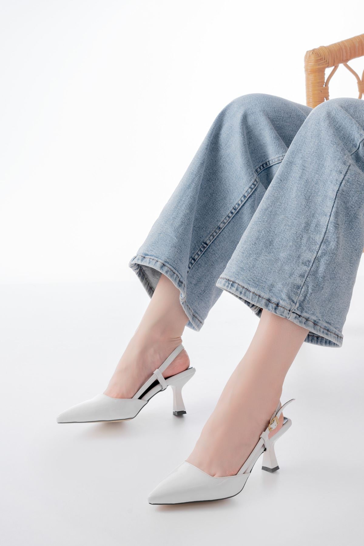 ST-002 White Skin Casual 7 cm Heeled Women's Shoes