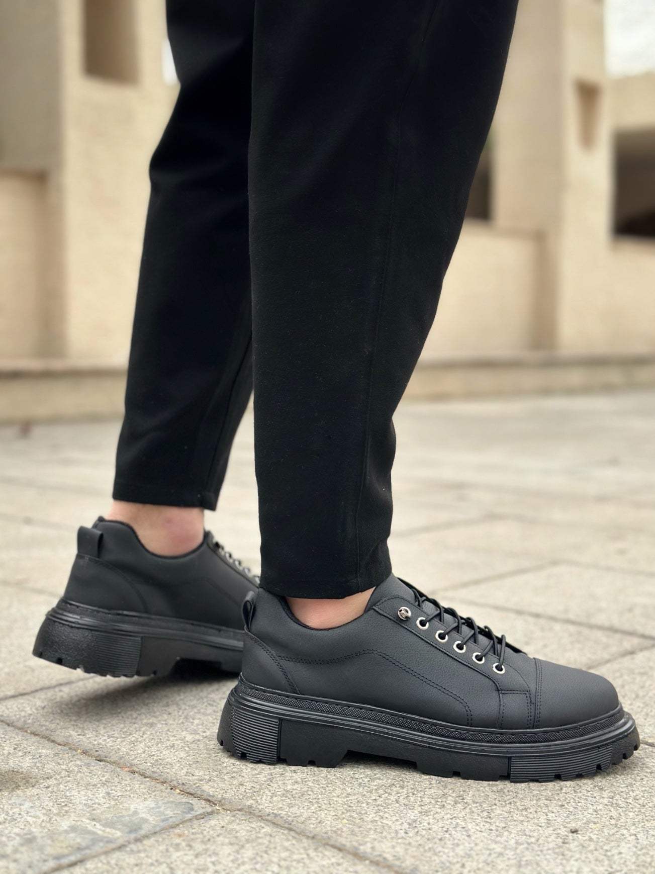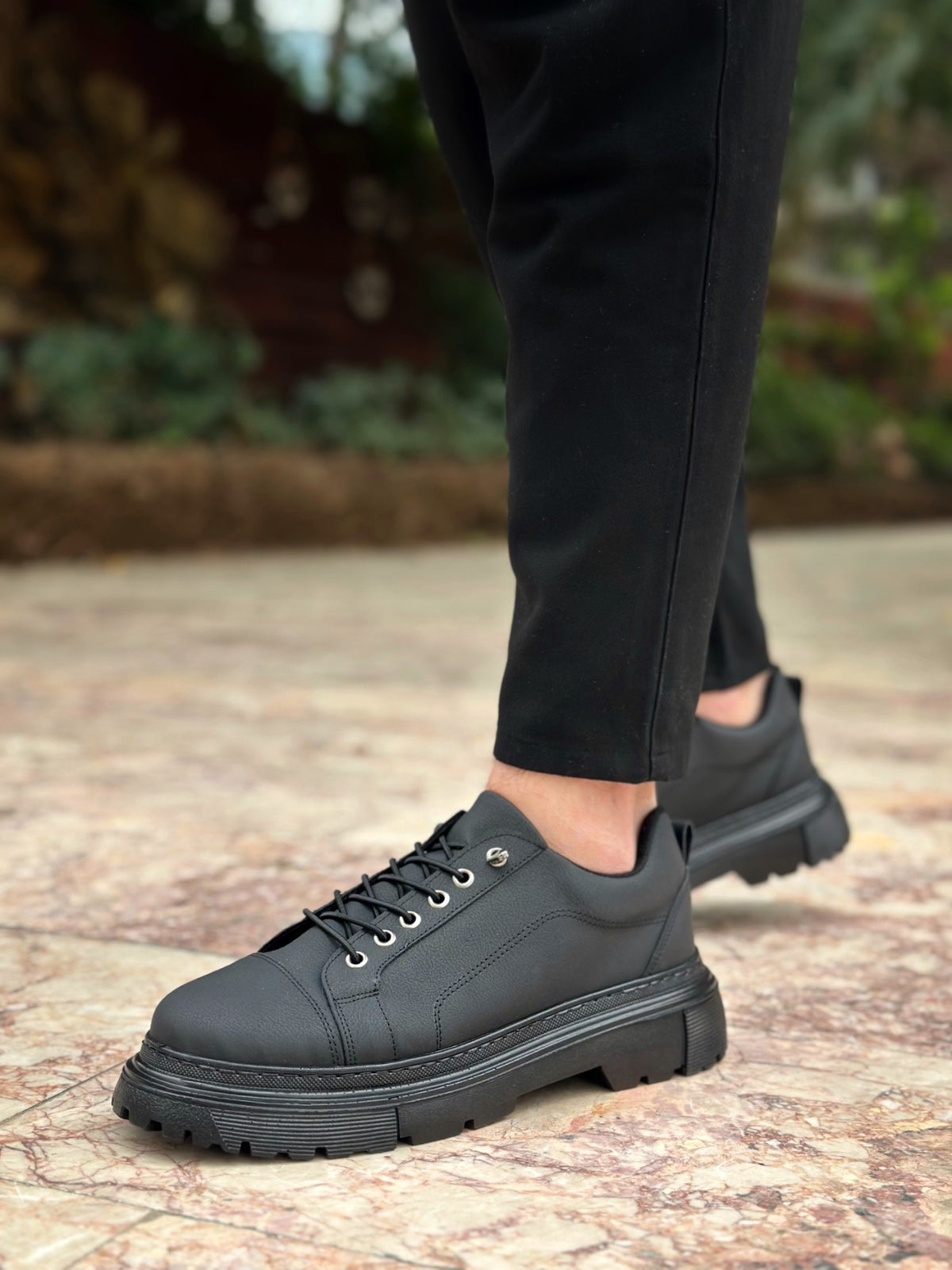 BA0245 Black Smart Elastic Lace-Up High Black Sole Casual Men's Shoes