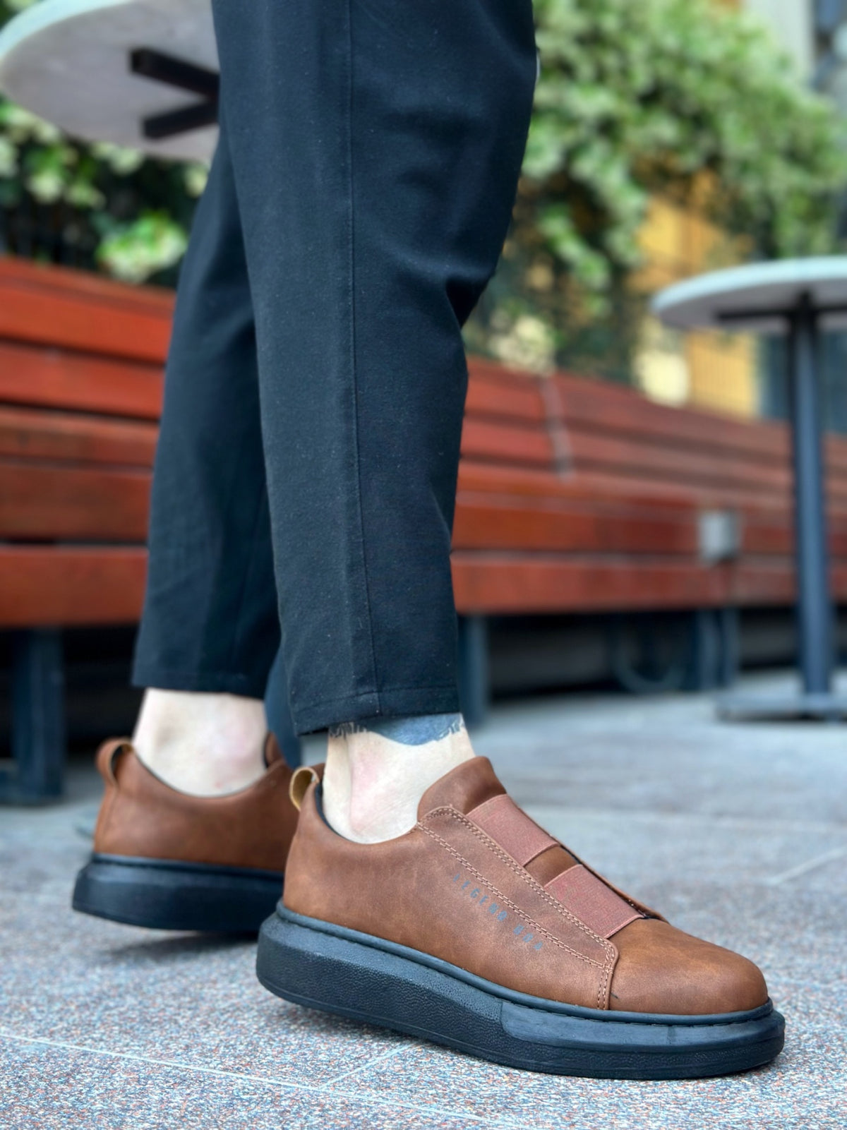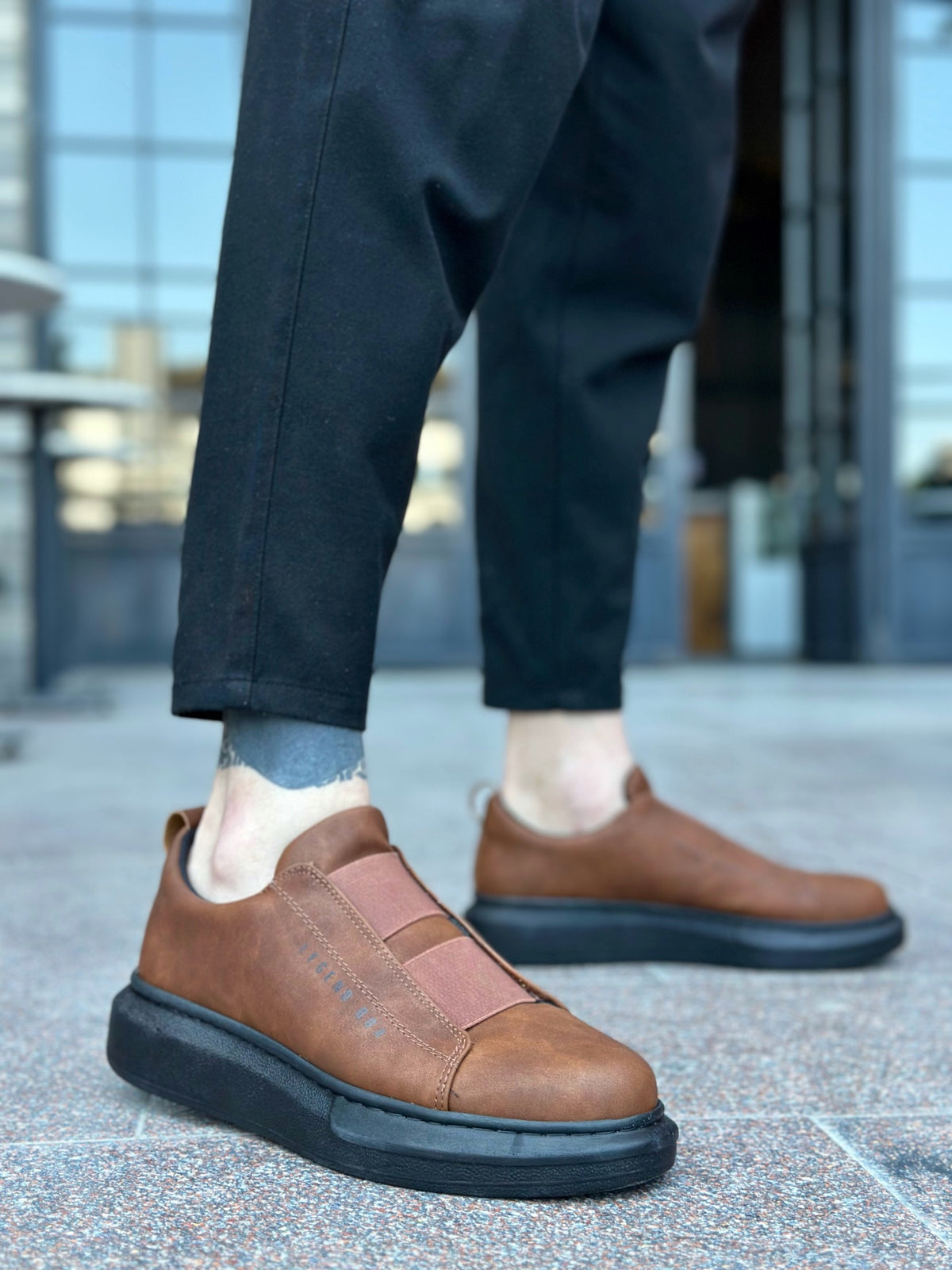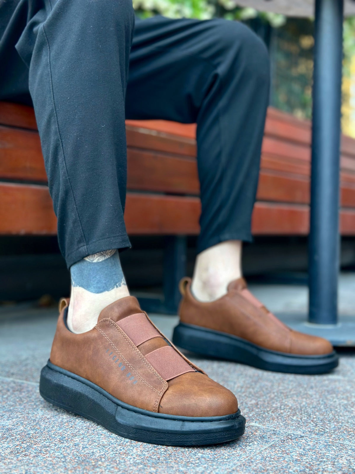 BA0307 BOA Thick High Sole Double Band Tan Black Men's Shoes