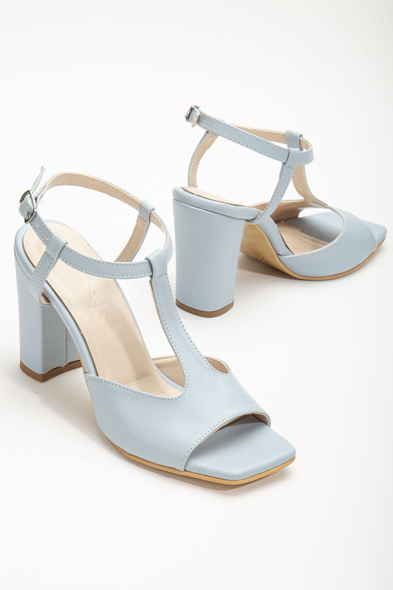 Entela Heeled Baby Blue Skin Blunt Toe Women's Shoes