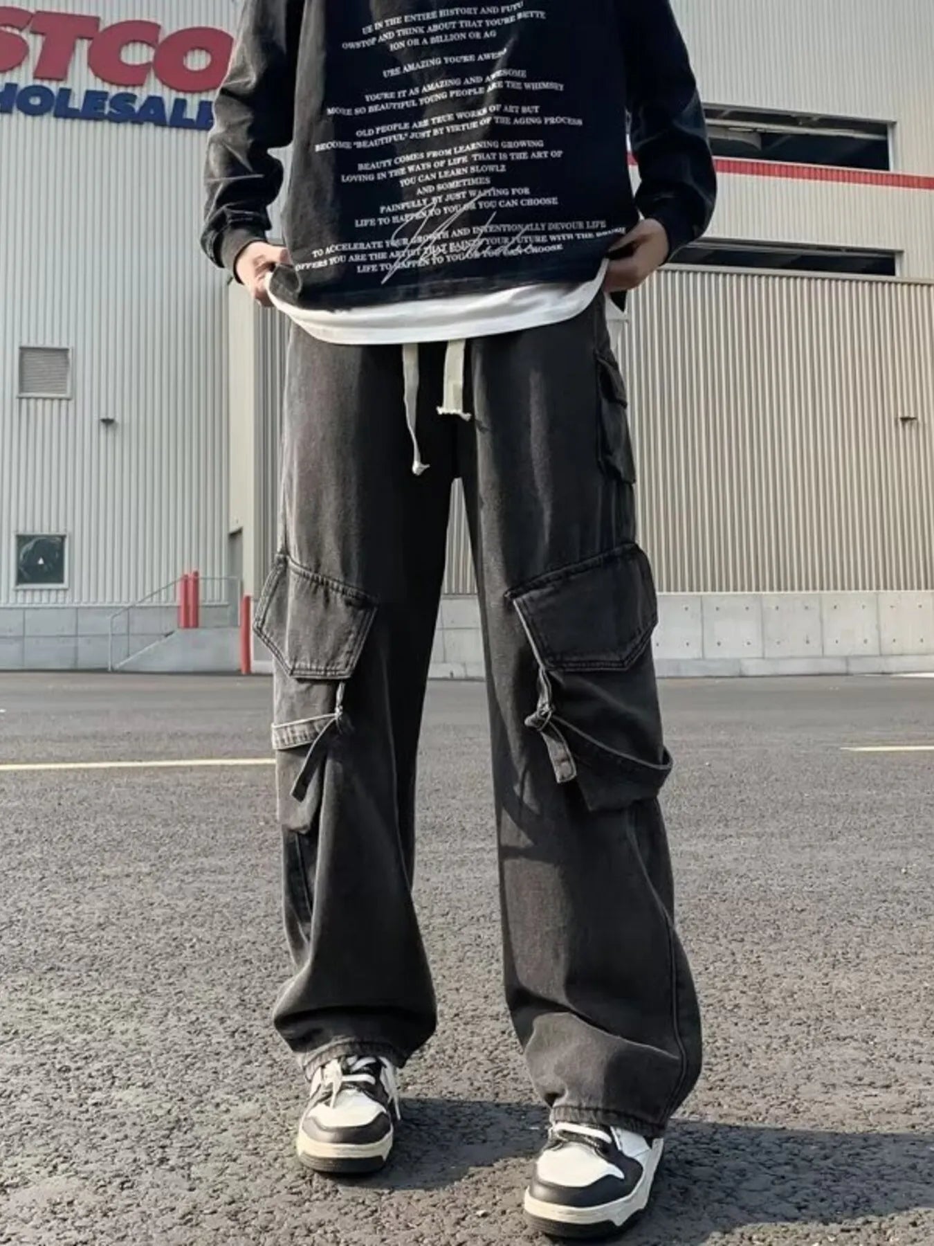 Men's Full Size Drawstring Wide Leg Cargo Jeans Plus Size