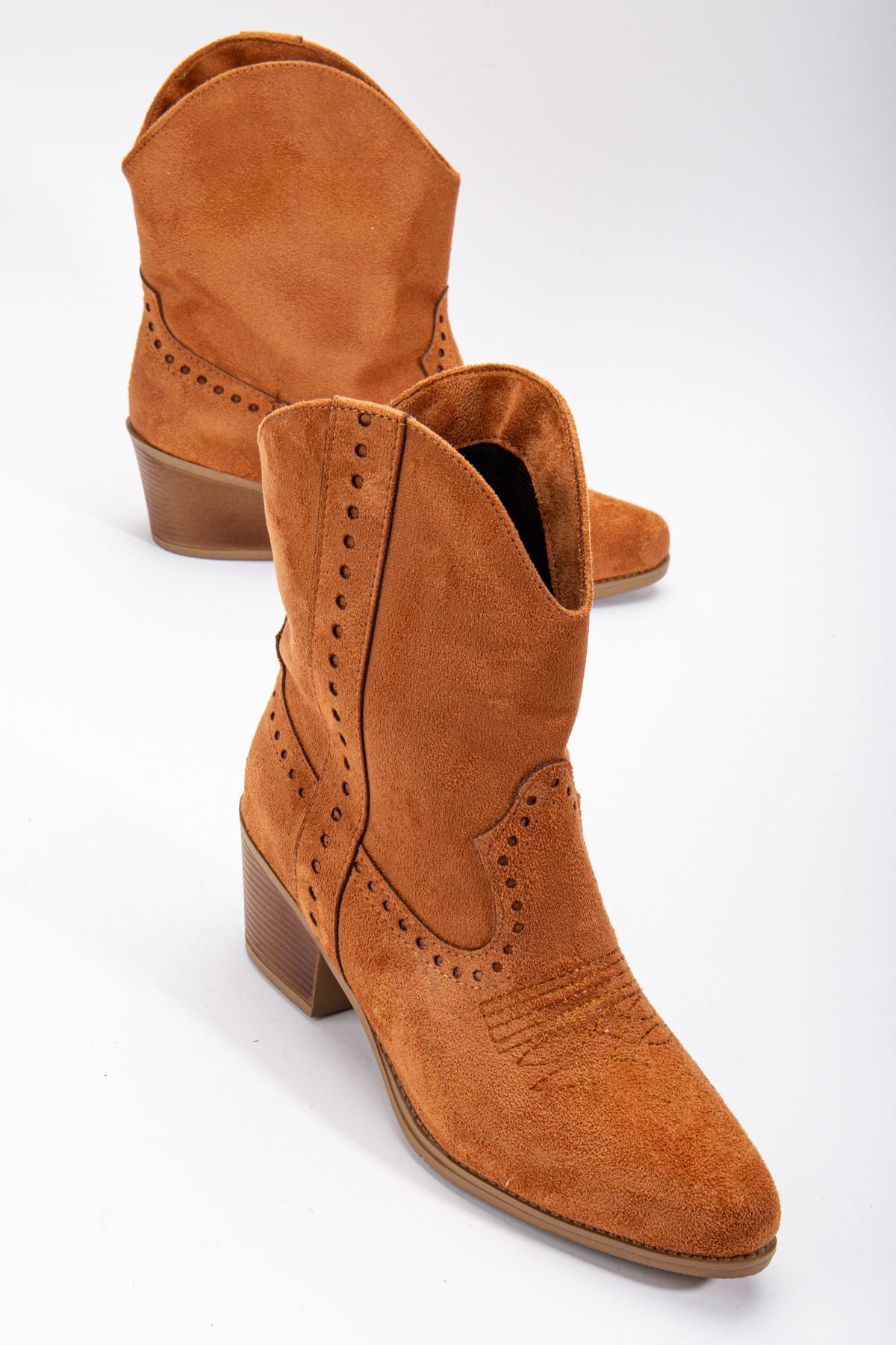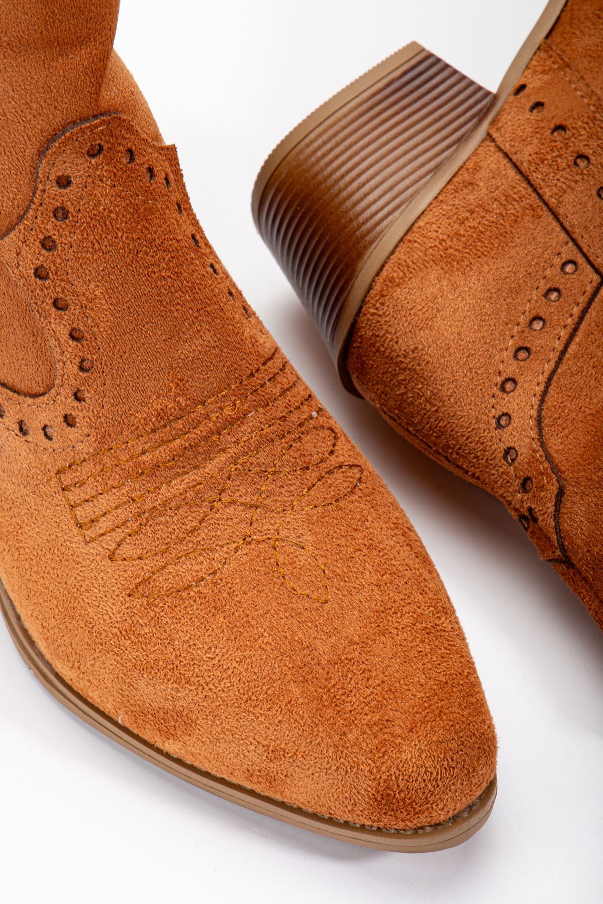 Tan Suede Embroidered Western Cowboy Boots