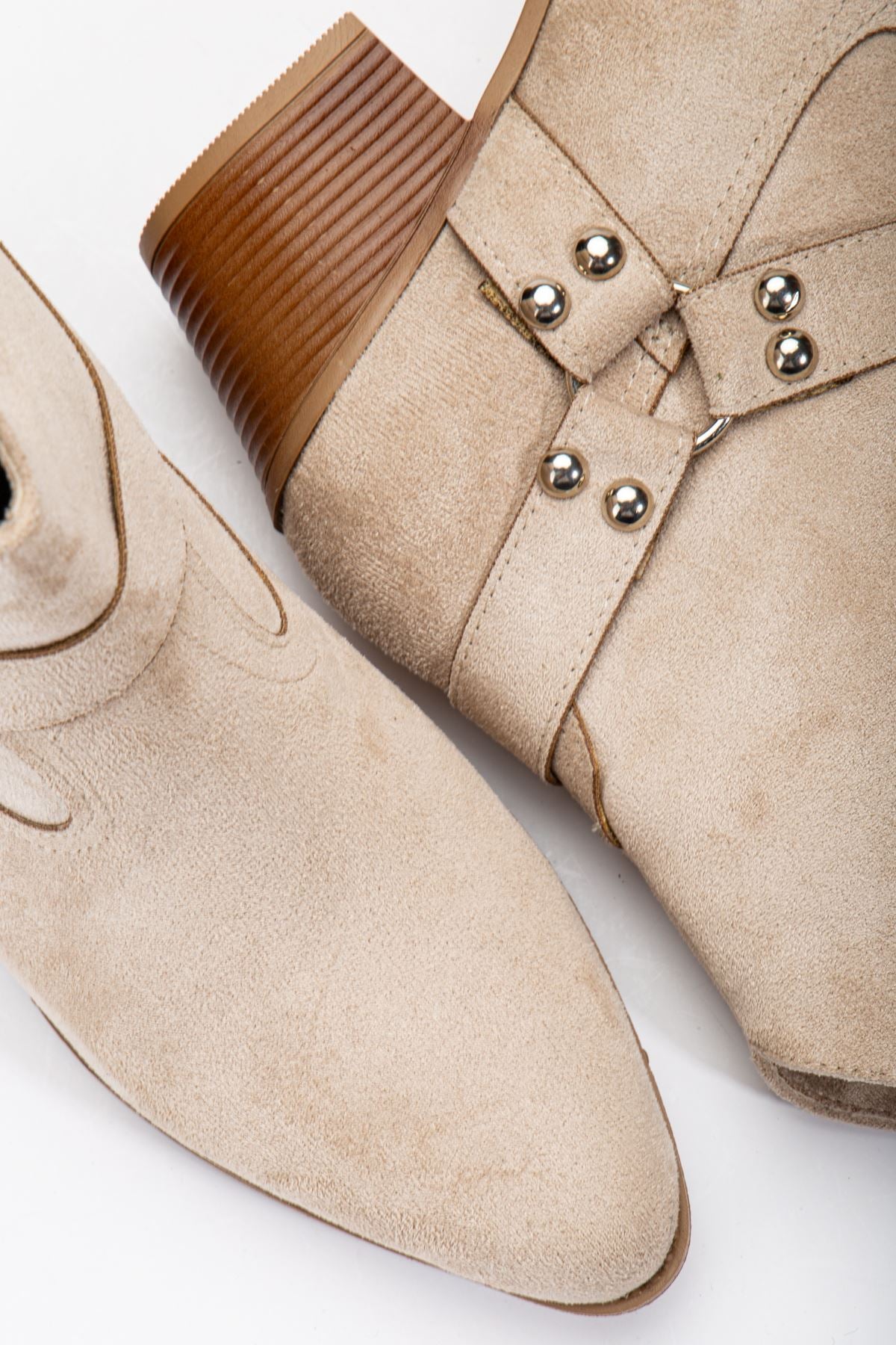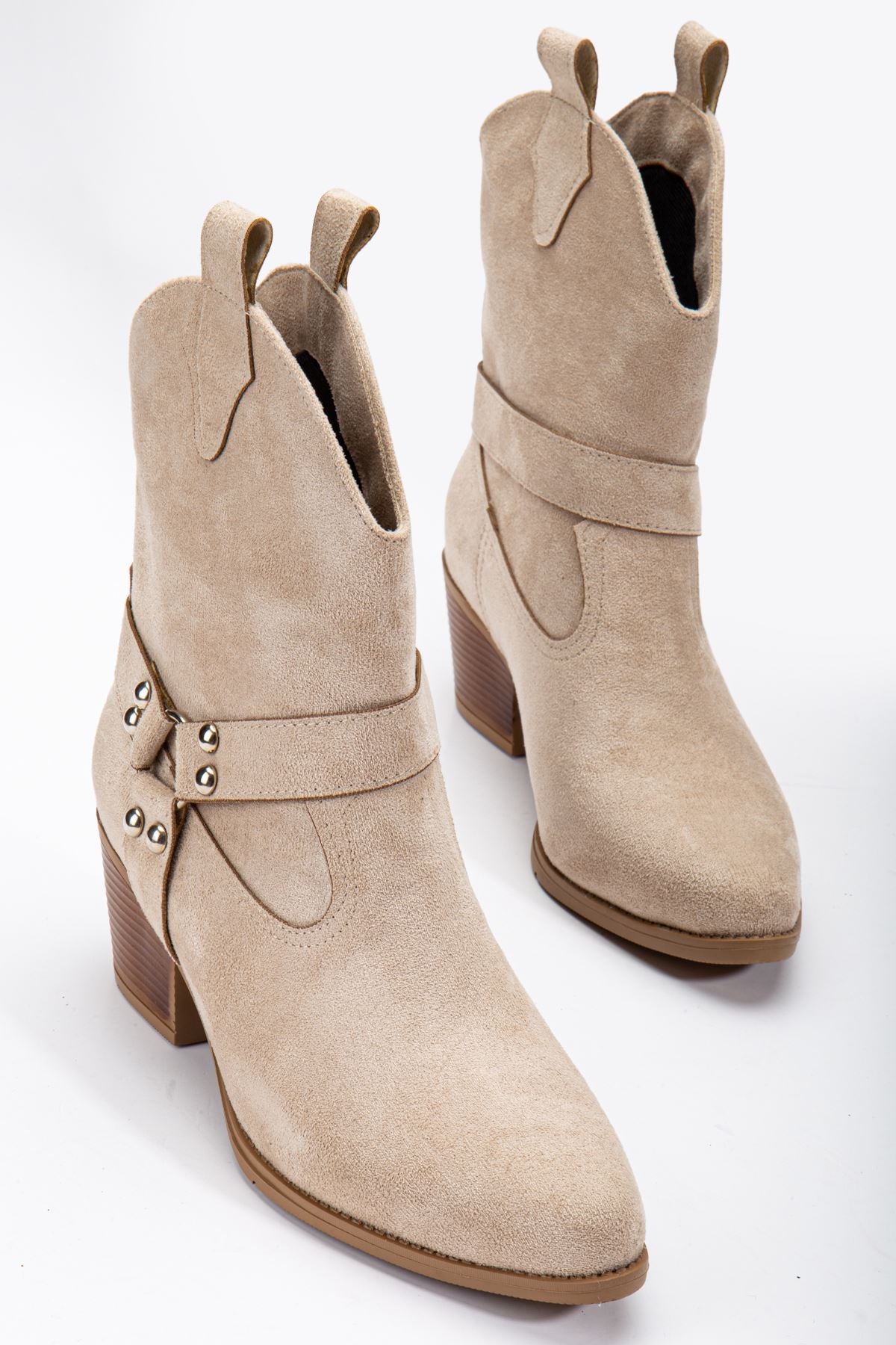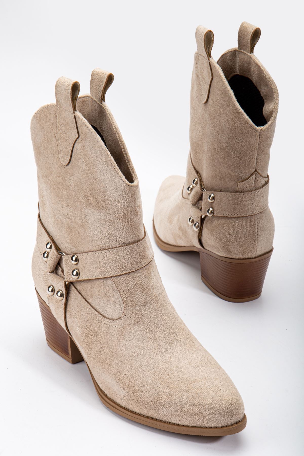 Women's Beige Suede Thermo Sole Pointed Toe Western Cowboy Boots