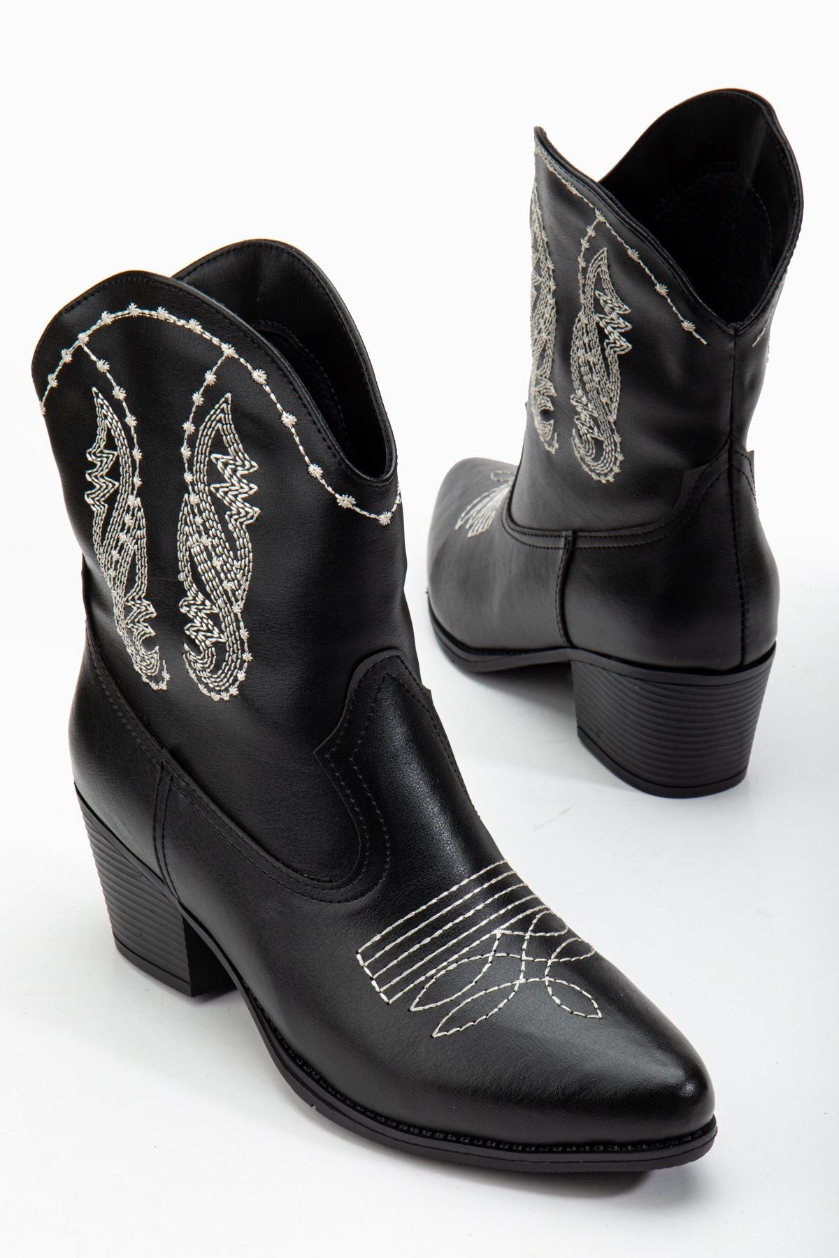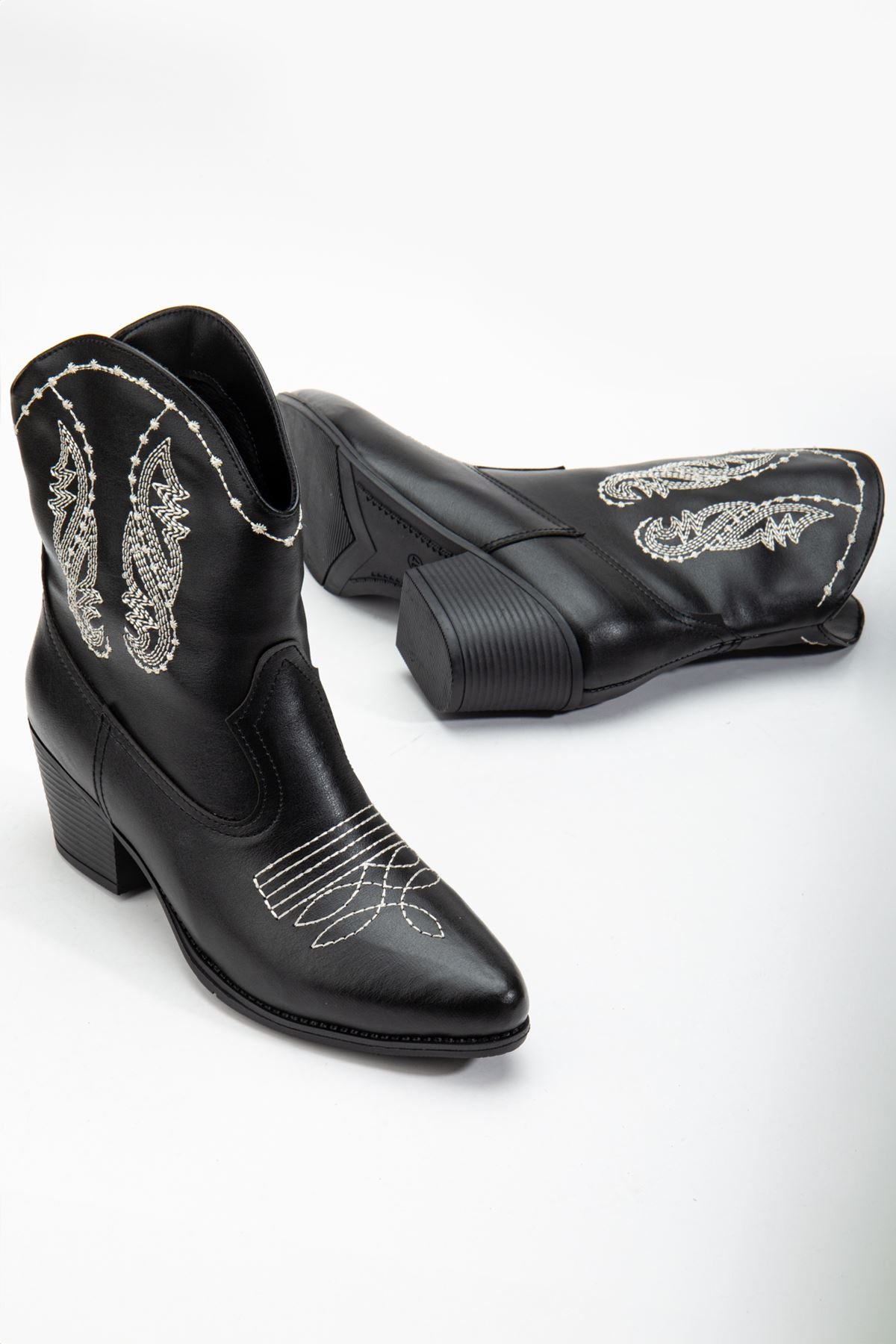 Women's Black Leather Thermo Sole Embroidered Western Cowboy Boots