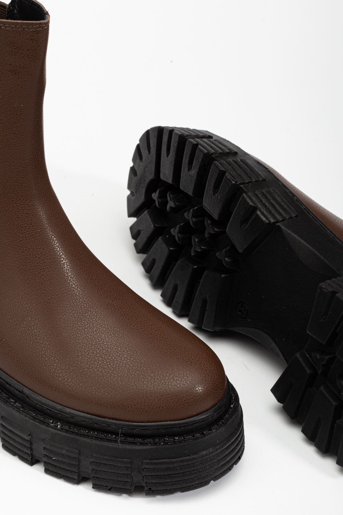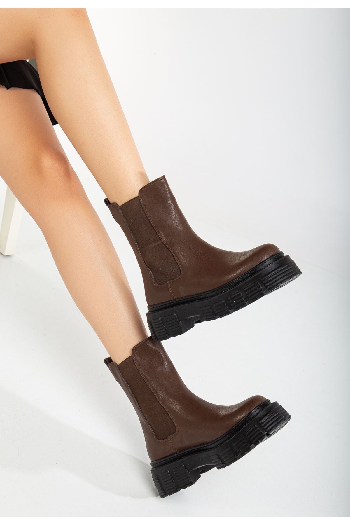 Women's Brown Side Elastic Zipperless Laceless Stitched Sole Waterproof Boots
