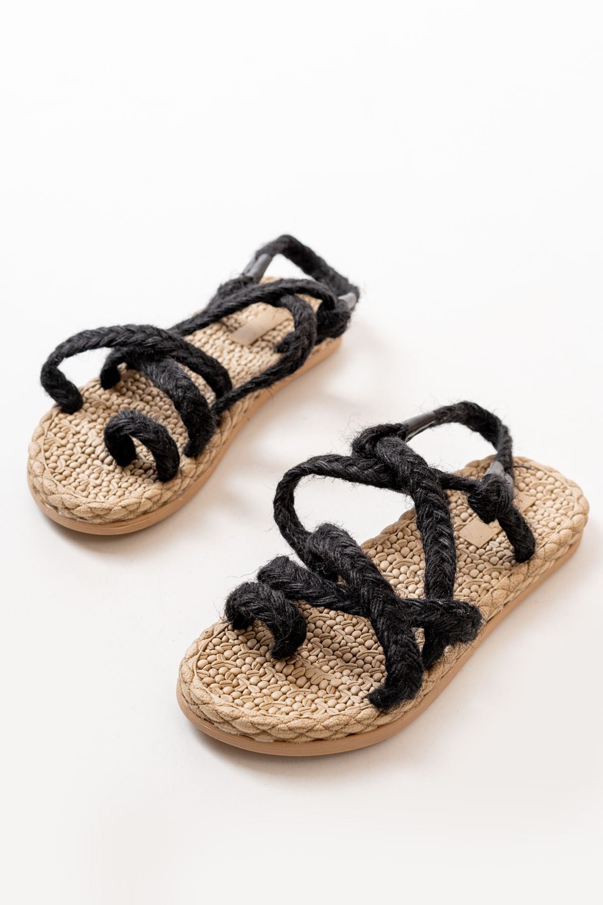 Black Straw Women's Sandals