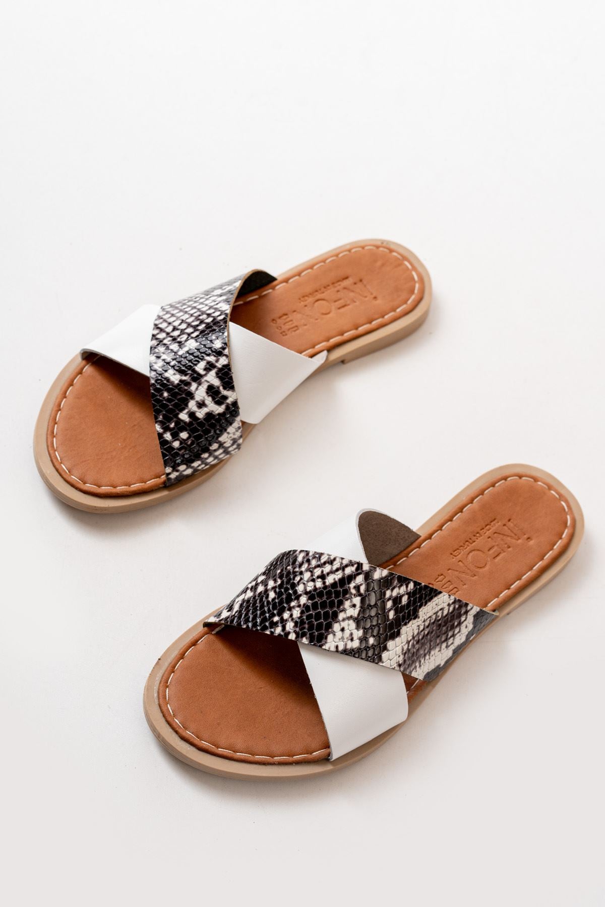 White Orthopedic Genuine Leather Cross Strap Women's Slippers