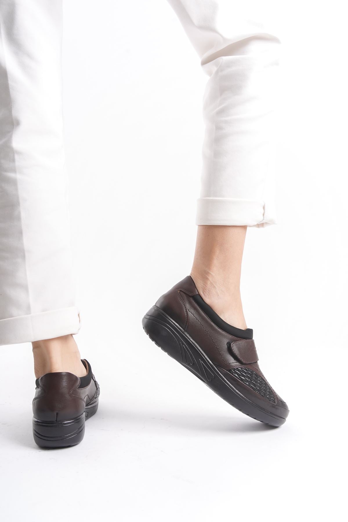 Women's Genuine Leather Full Orthopedic Suitable for Bone Protrusion Brown Velcro