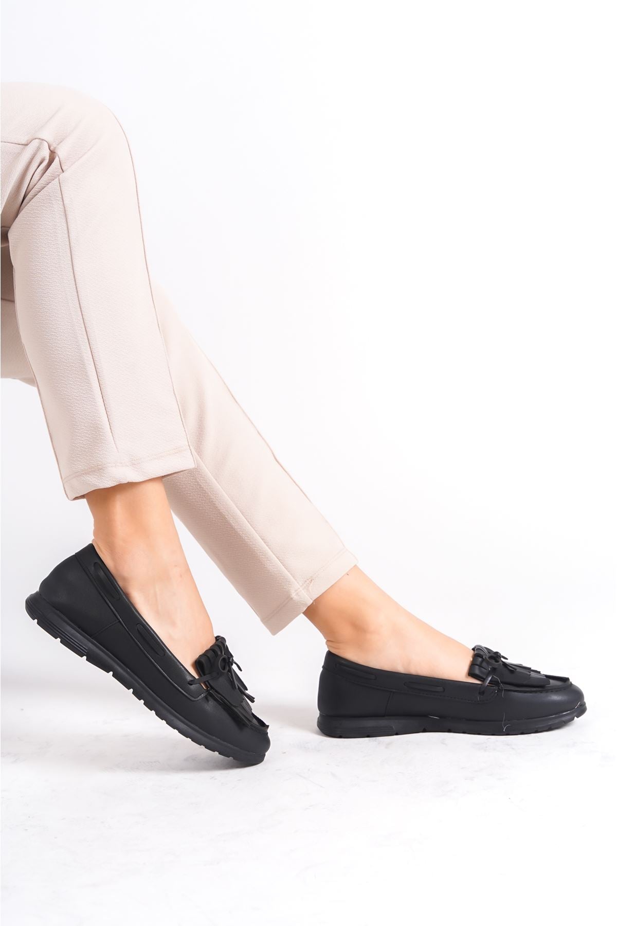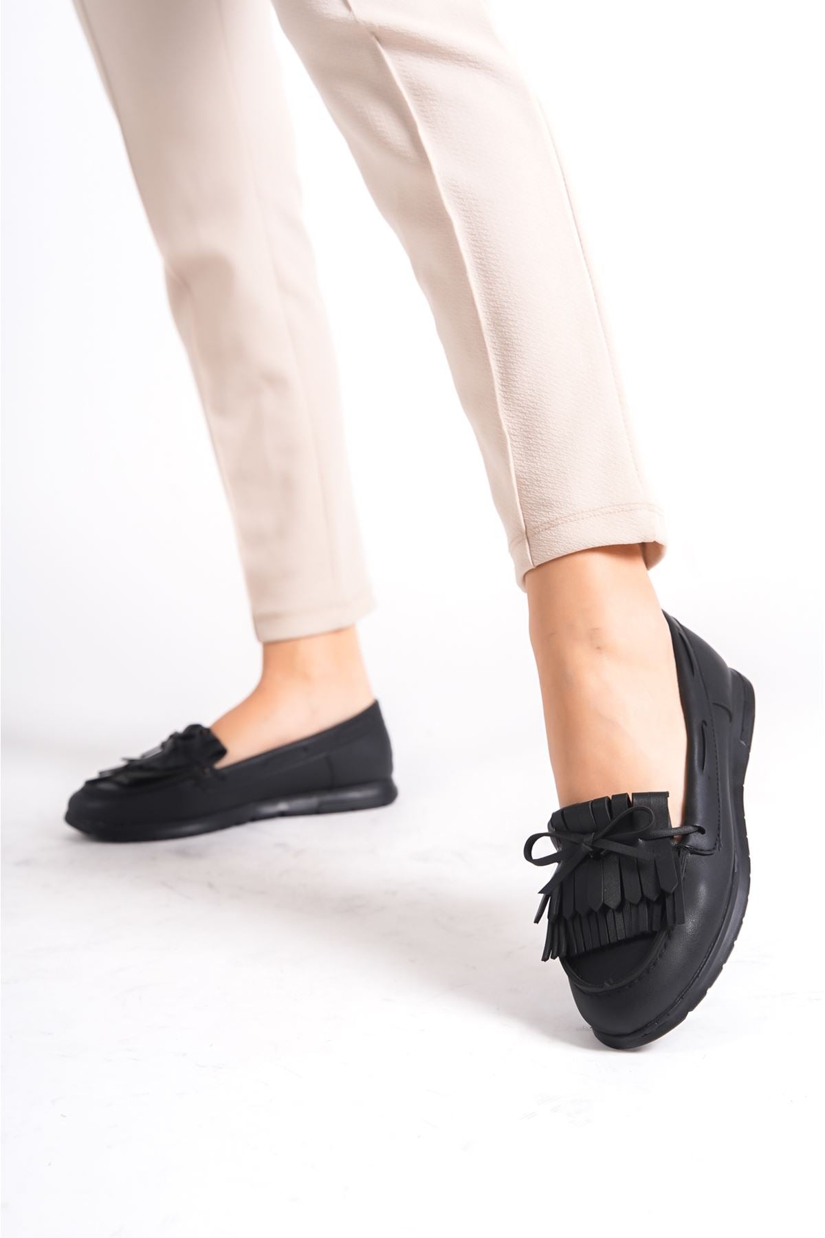 Werway Black Bow-Tasseled Women's Ballerinas