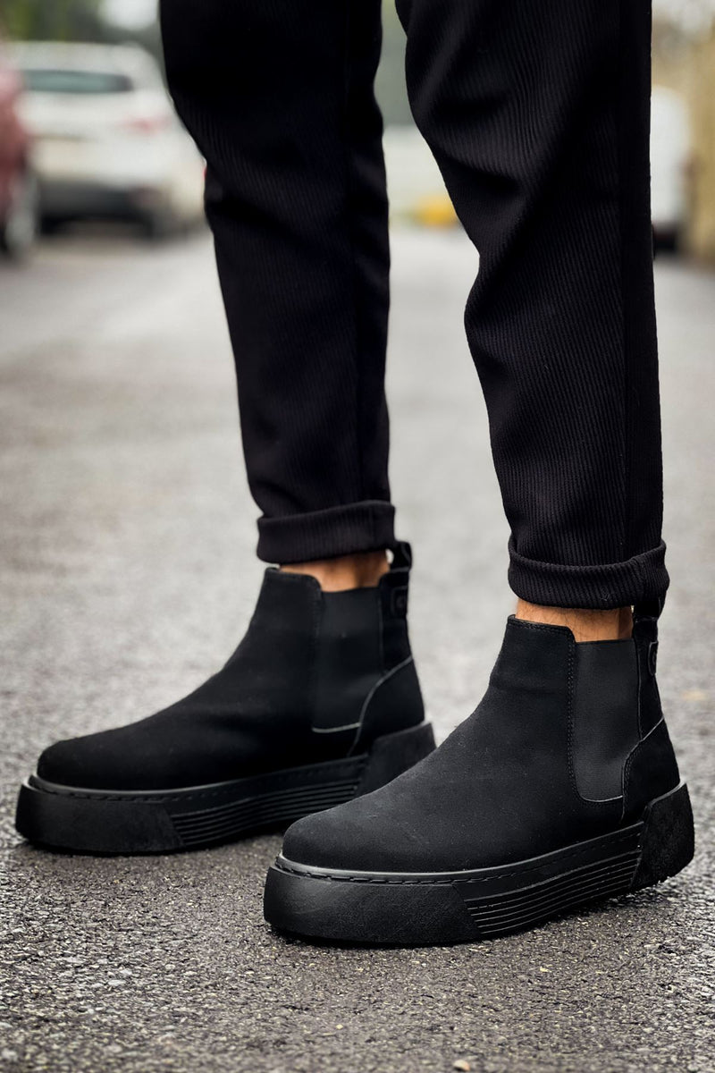 Men's High Sole Chelsea Boots 113 Black (White Sole)