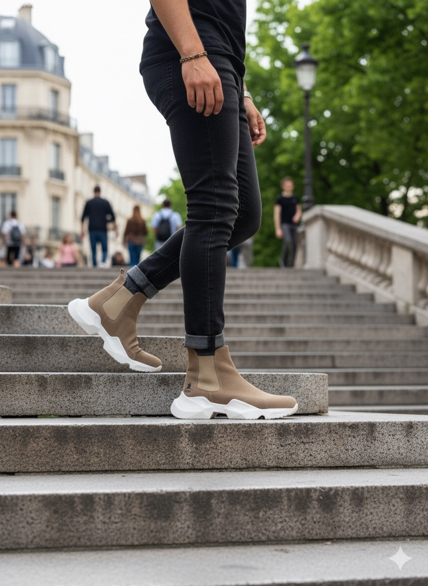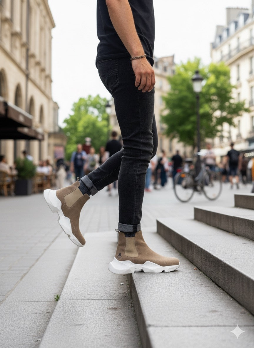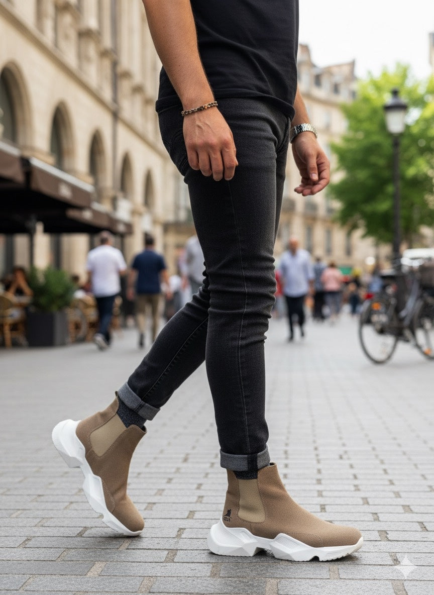 BA0444 Laceless Comfortable High Sole Mink Men's Sports Half Ankle Boots