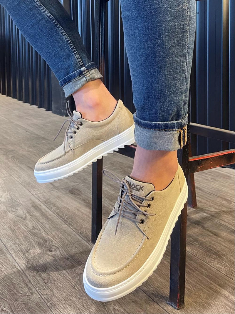 BA0777 Suede Beige Double Zippered Men's Half Ankle Boots
