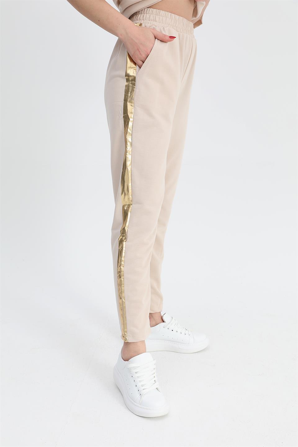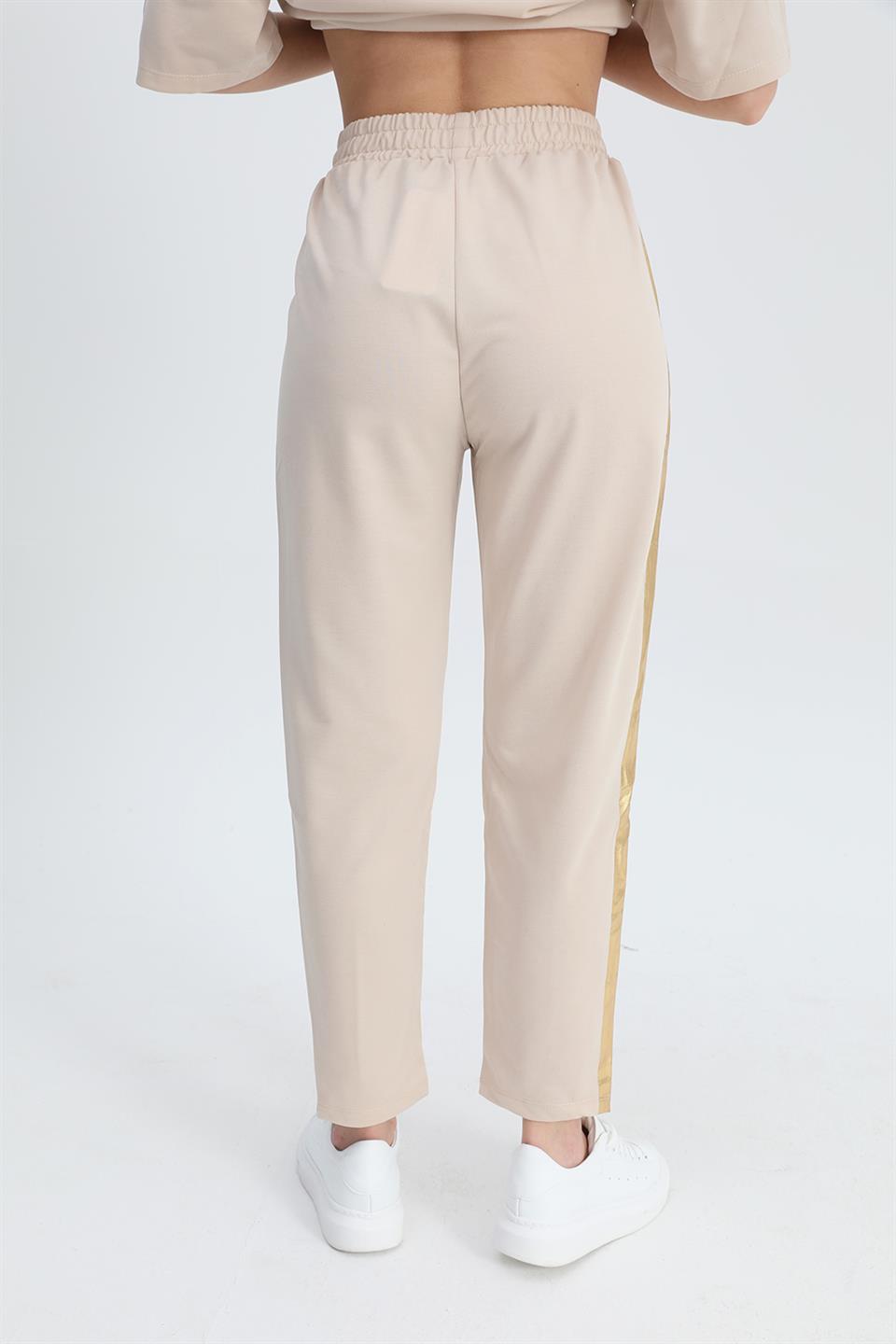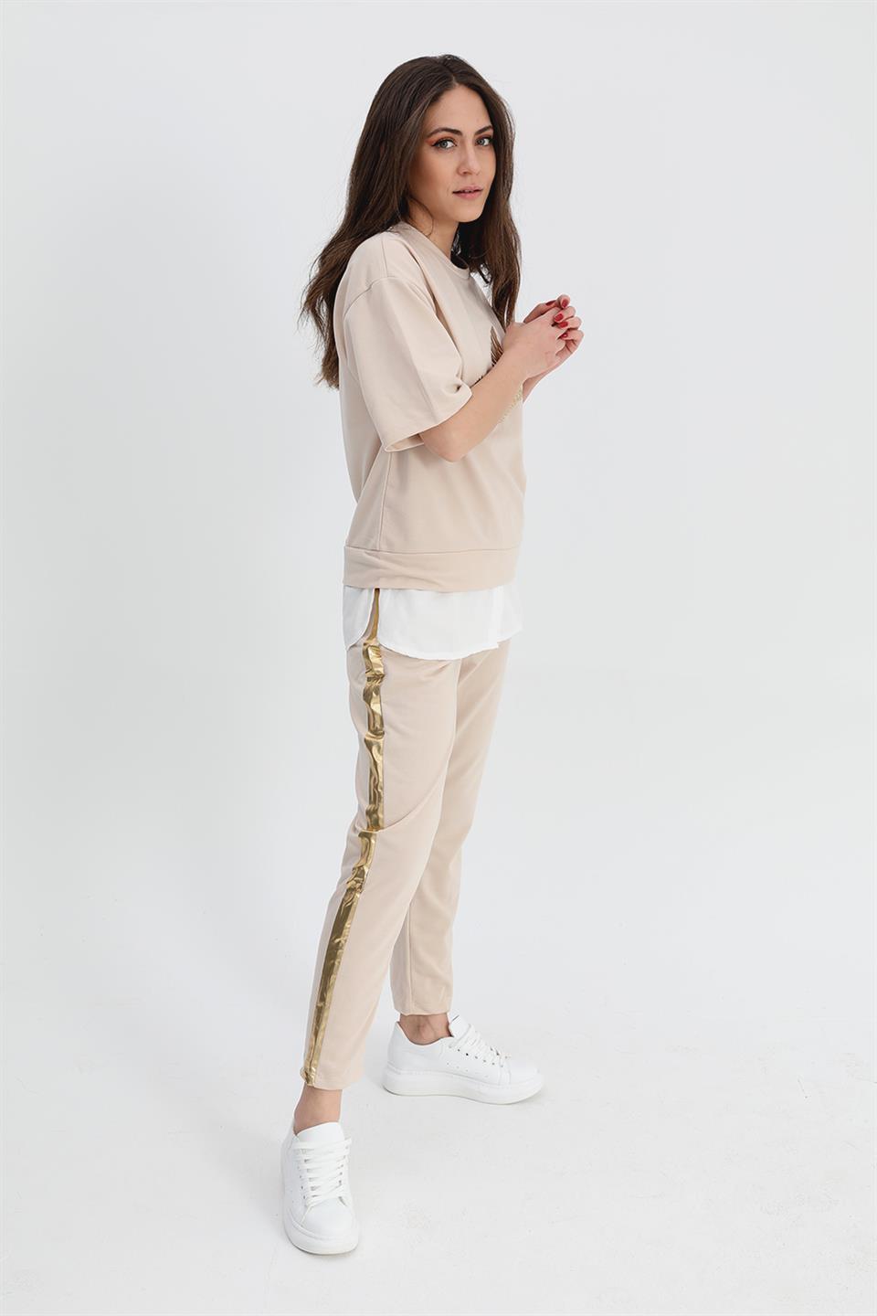 Women's Suit Skirt Grass Bird Printed Elastic Waist T-shirt Trousers - Beige