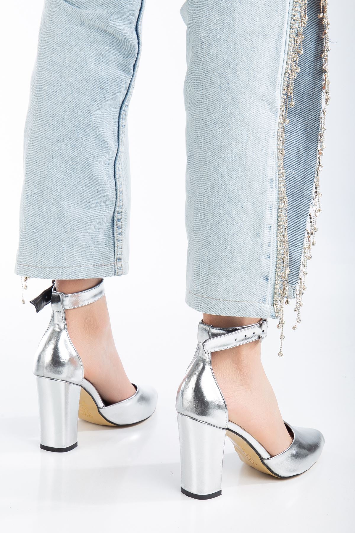 Women's Lole Heeled Silver Skin Detailed Heeled Shoes