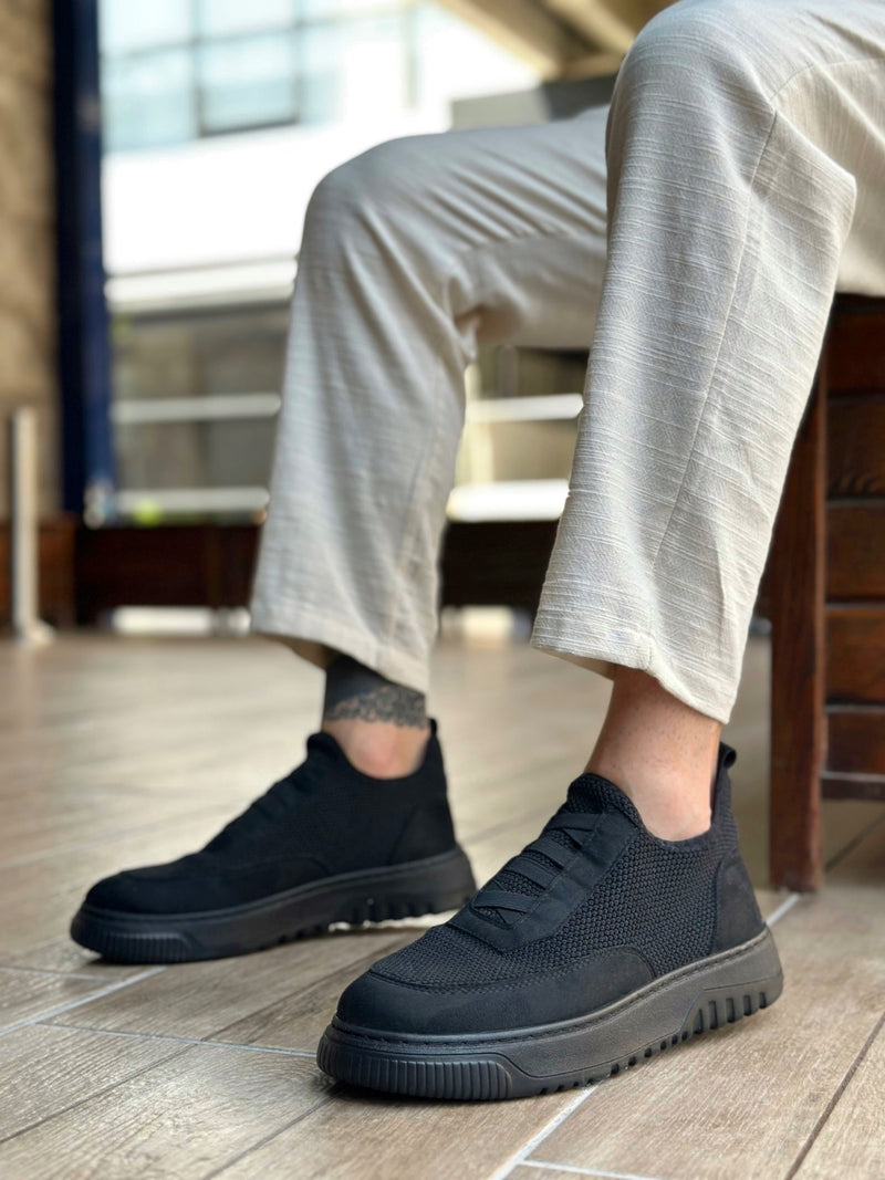 BA0423 Thick Black High Sole Black Laced Sports Men's Shoes
