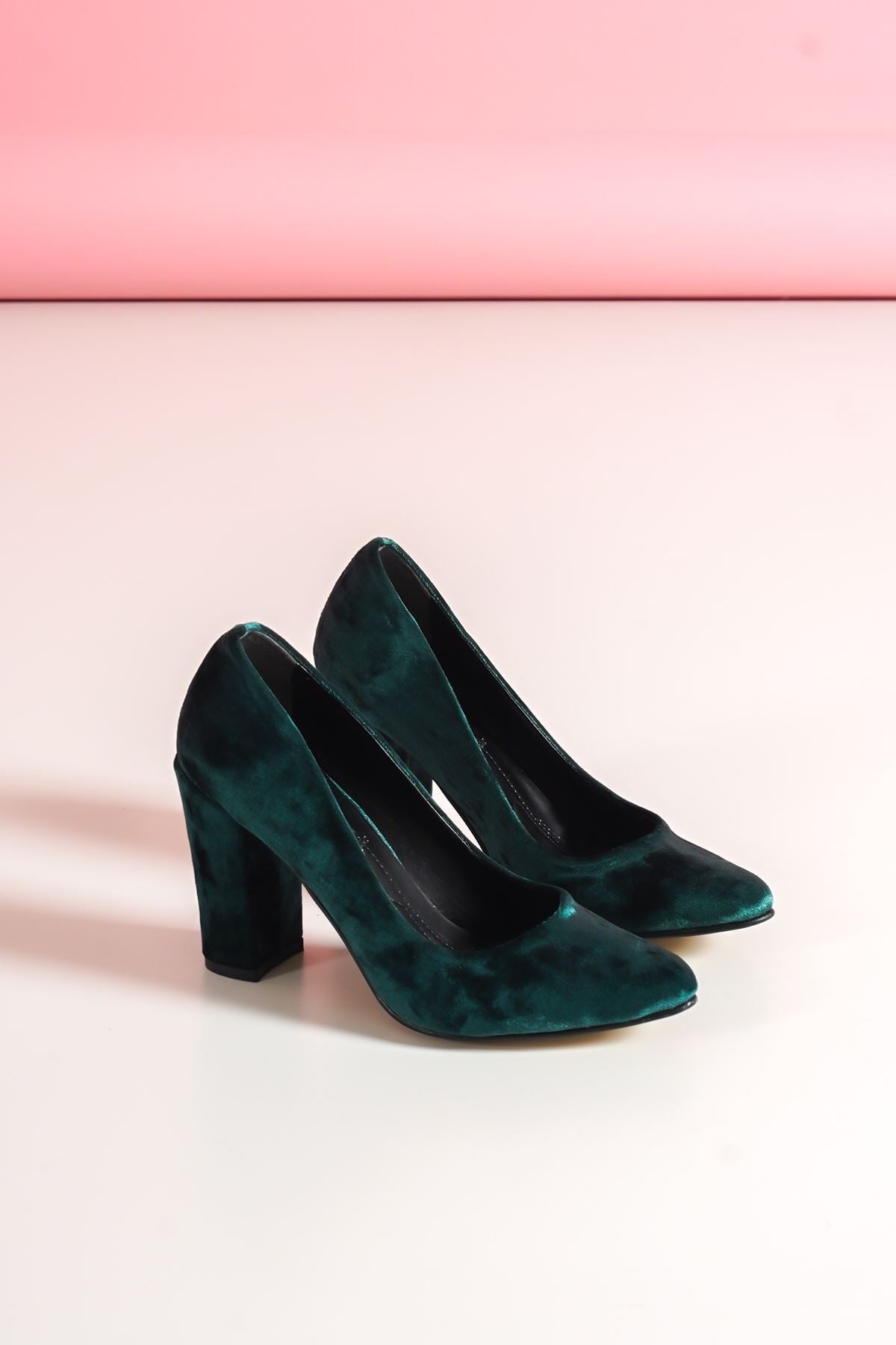 Women's Marry Khaki Green Velvet Heeled Shoes