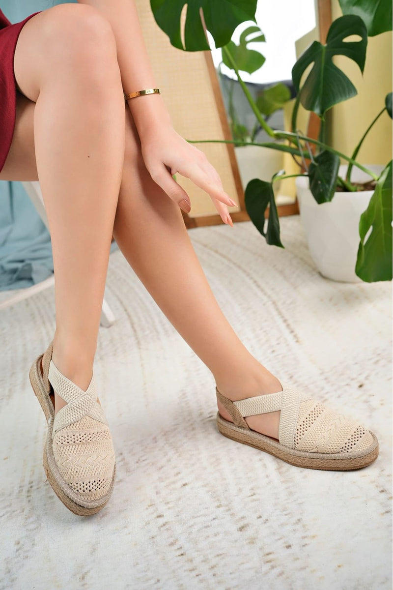 Women's Cream Closed Toe Elastic Knitwear Sandals