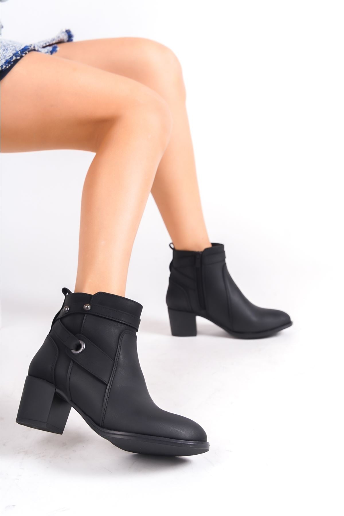 Lorin Black Thick Heeled Women's Boots