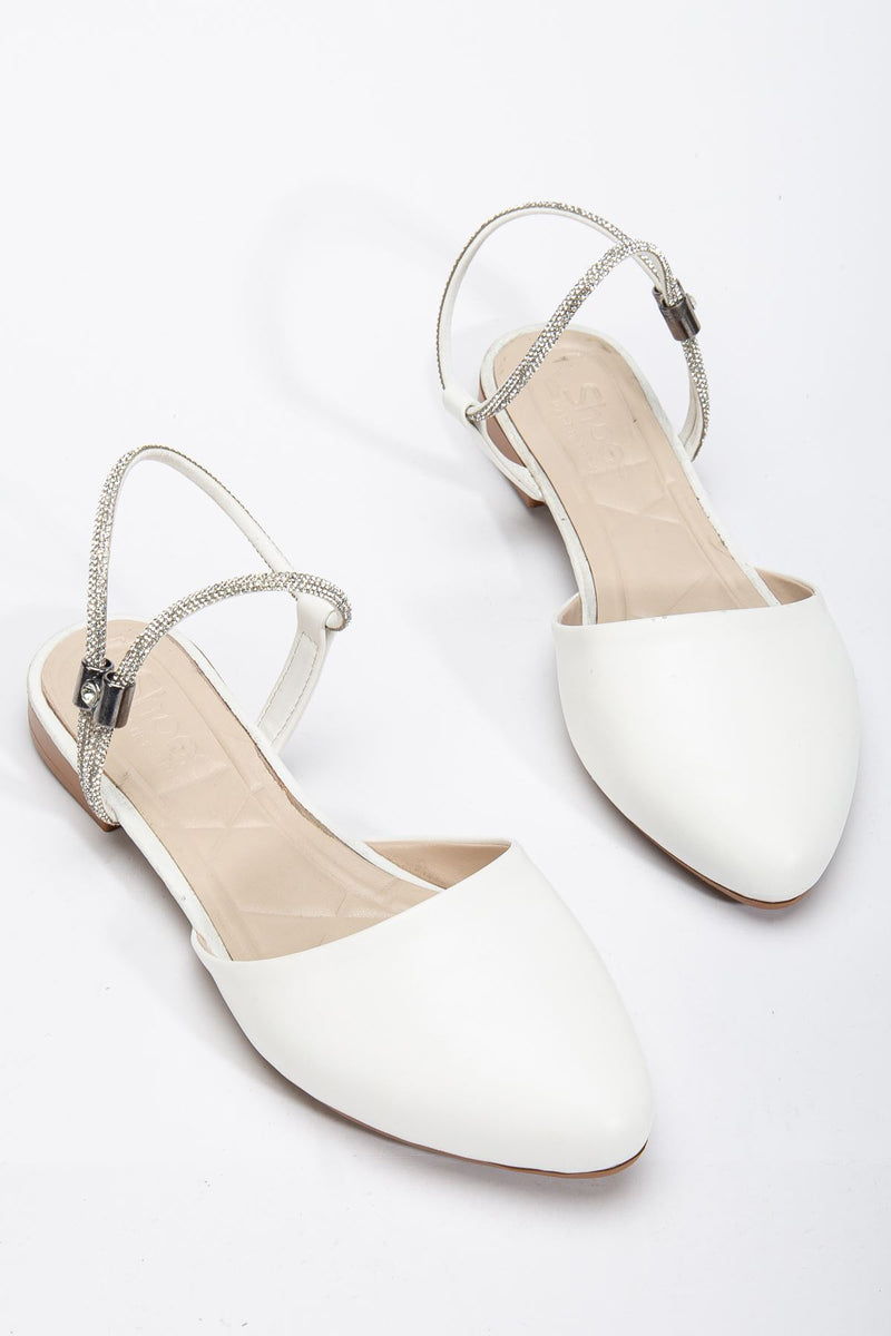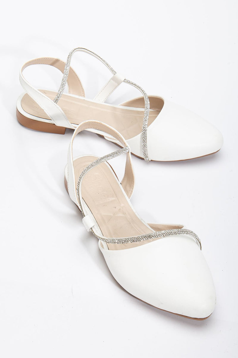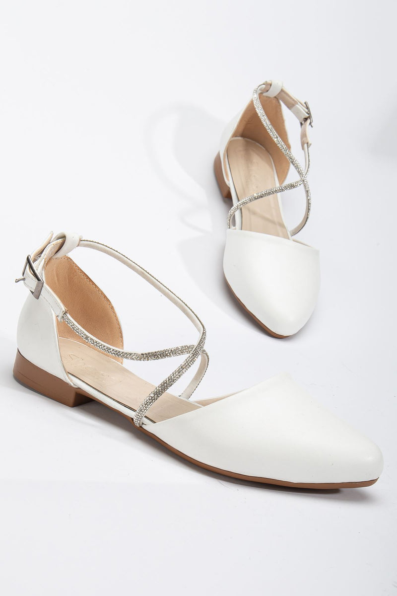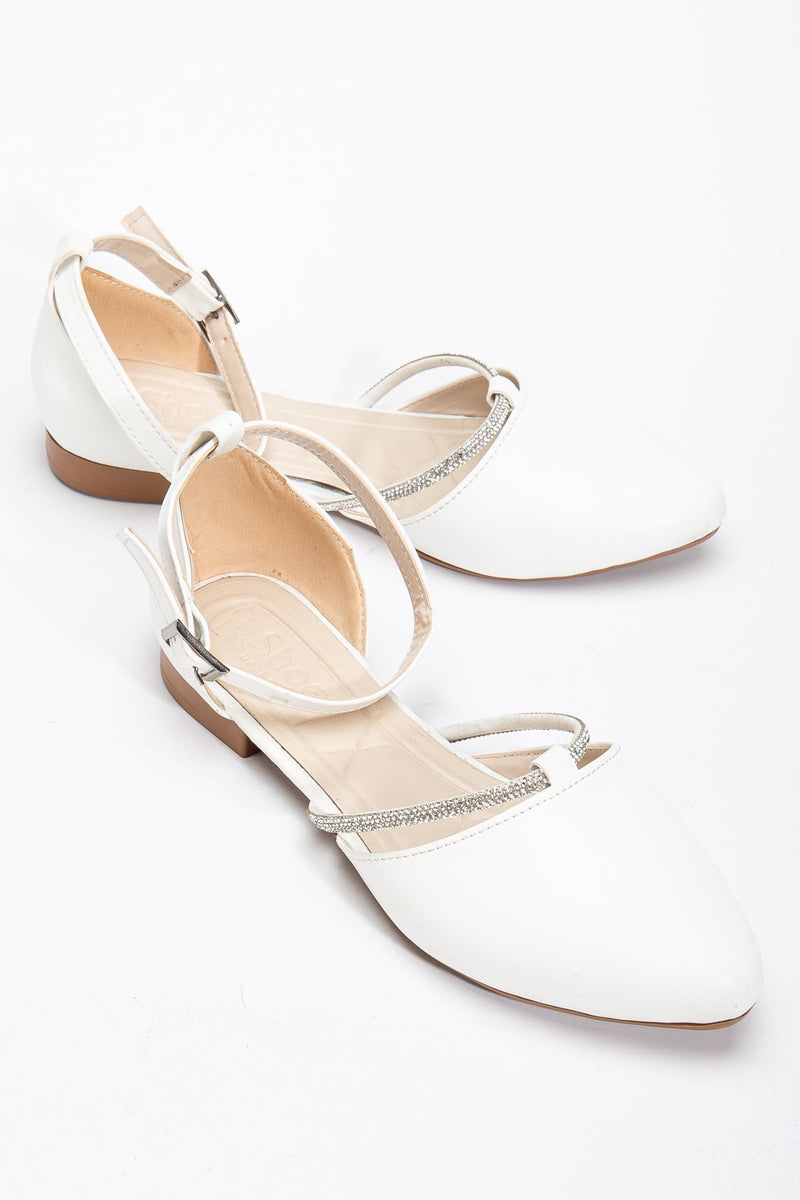 Women's White Skin Stone Detailed Orthopedic Ballerinas