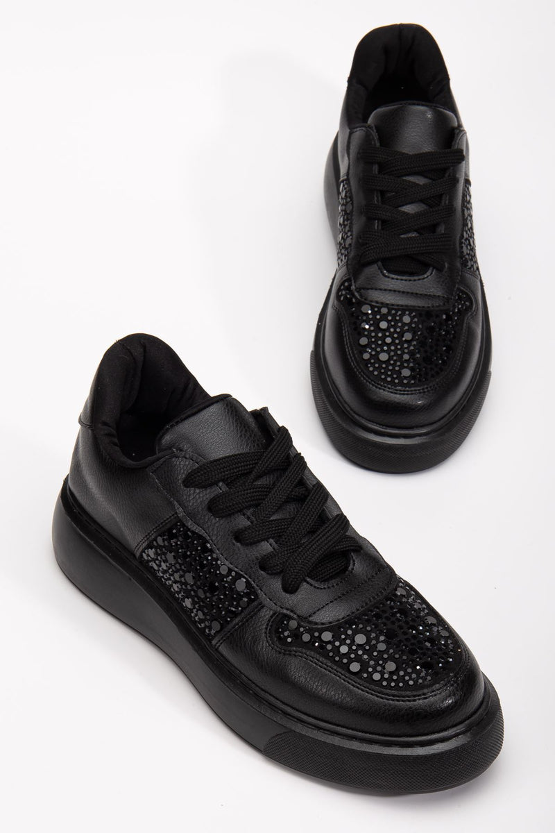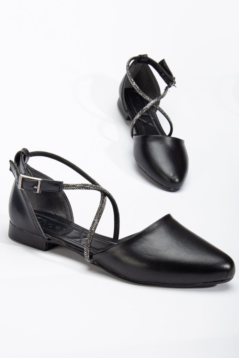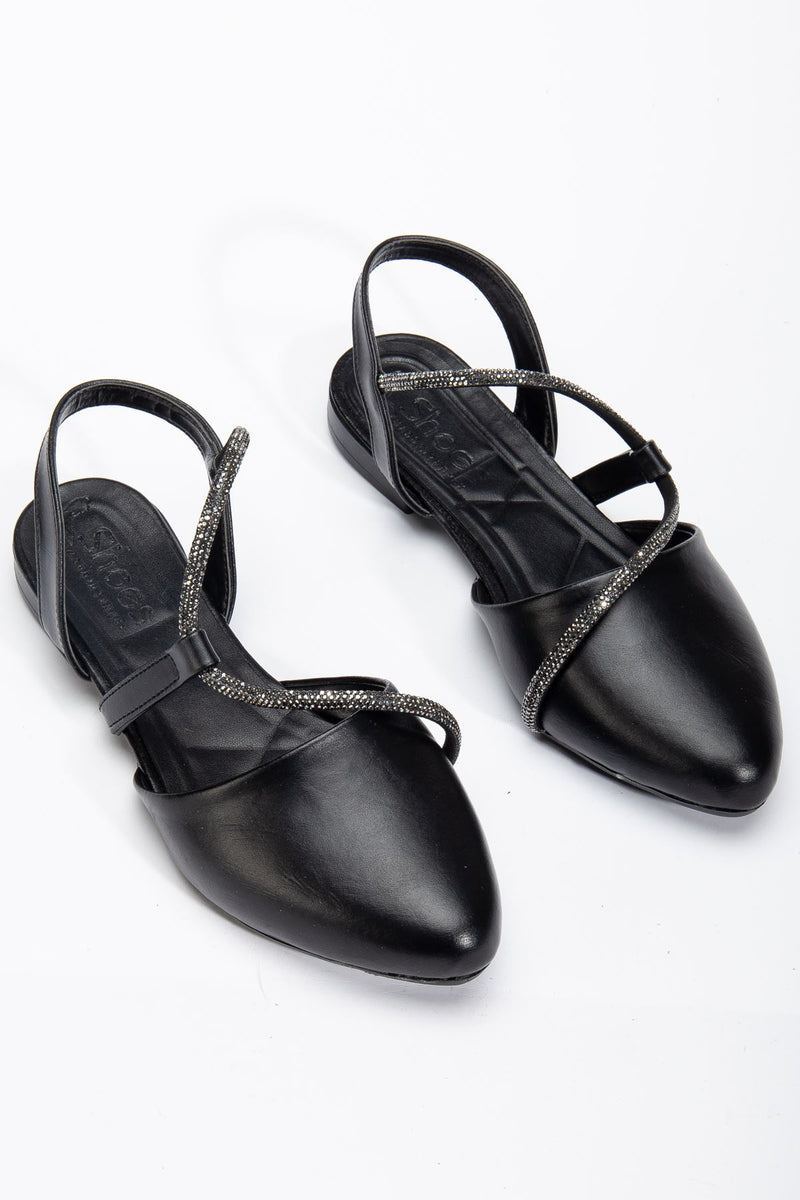 Women's Black Stoned Closed Toe Orthopedic Ballerina