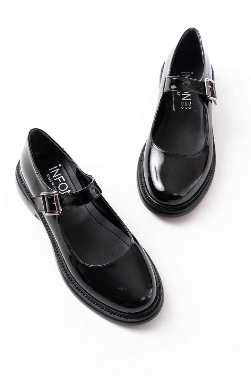 Women's Black Patent Leather Casual Orthopedic Sole Oxford Shoes