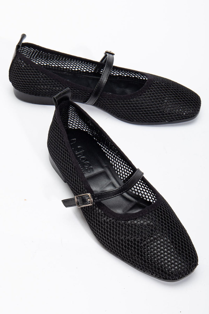 Black Women's Mesh Single Strap Comfortable Ergonomic Ballerinas Soft Sole