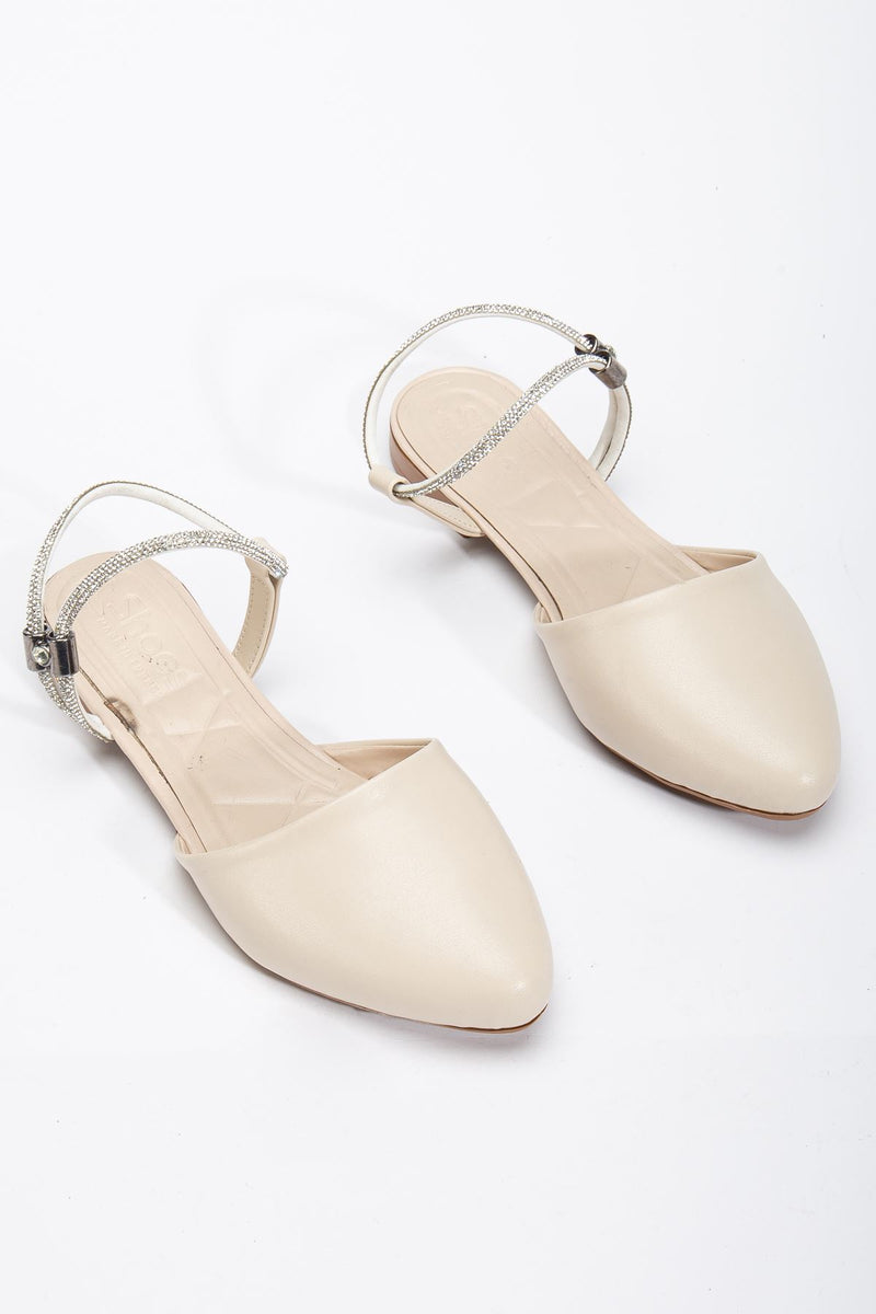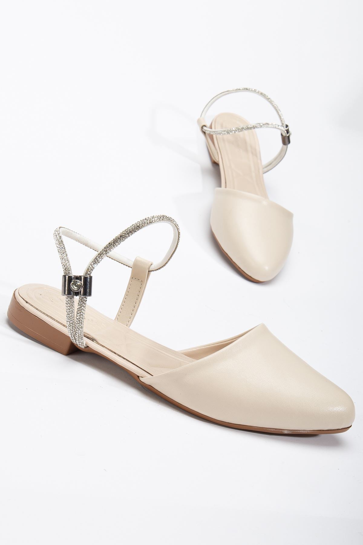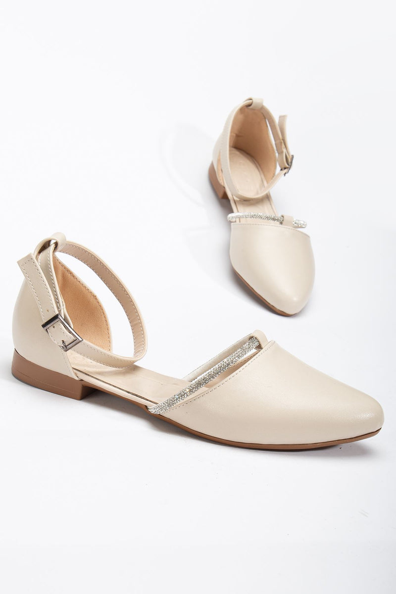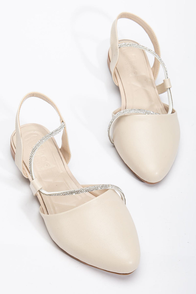 Women's Beige Skin Stone Detailed Orthopedic Ballerinas