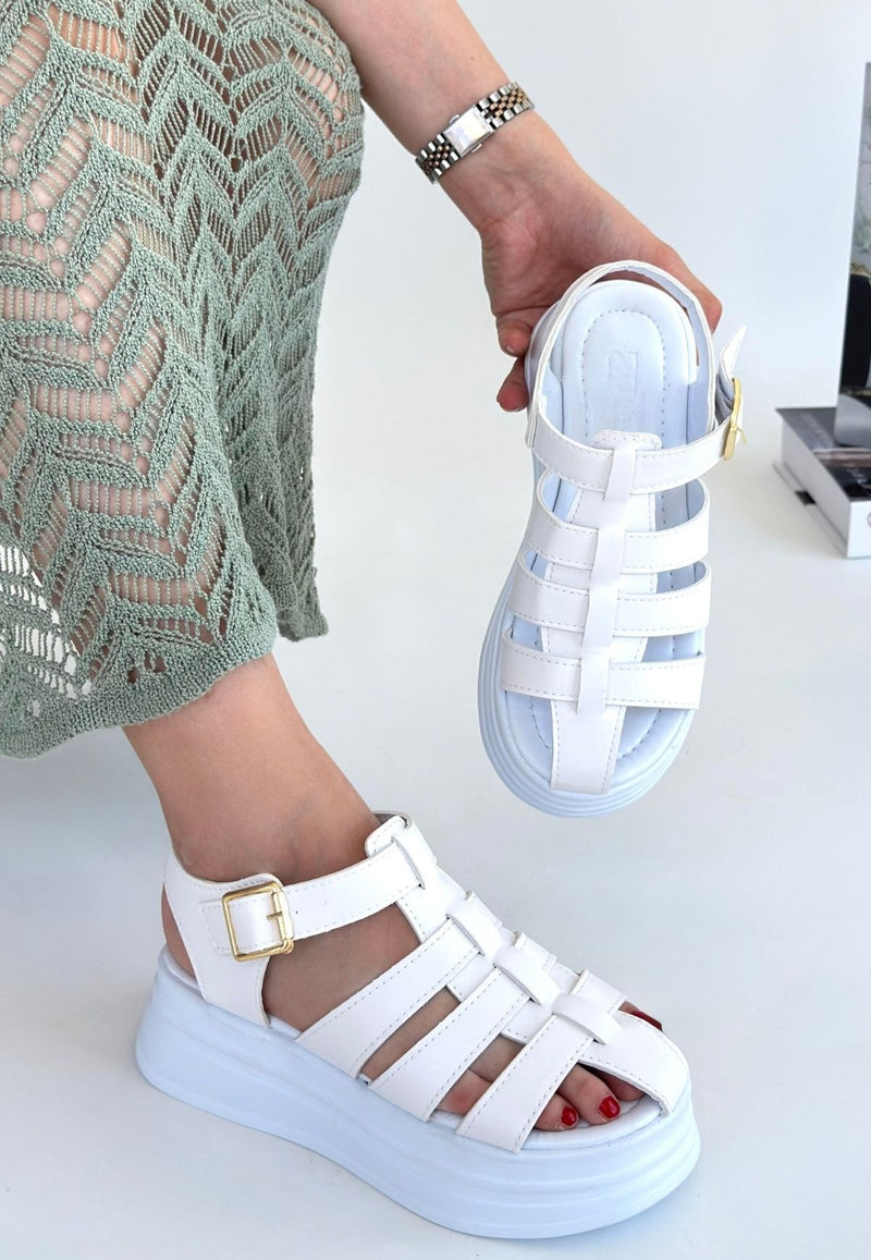 Women's White Mother of Pearl Leather Platform Open Toe Chunky Heel Shoes