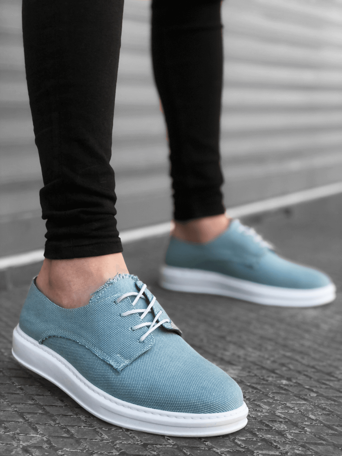 BA0003 Lace-Up Classic Sports Linen Turquoise High Sole Casual Men Shoes