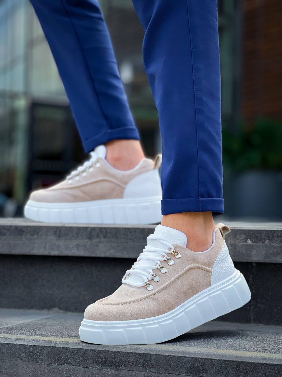 KB-X10 Beige Suede White High Sole Casual Sneakers