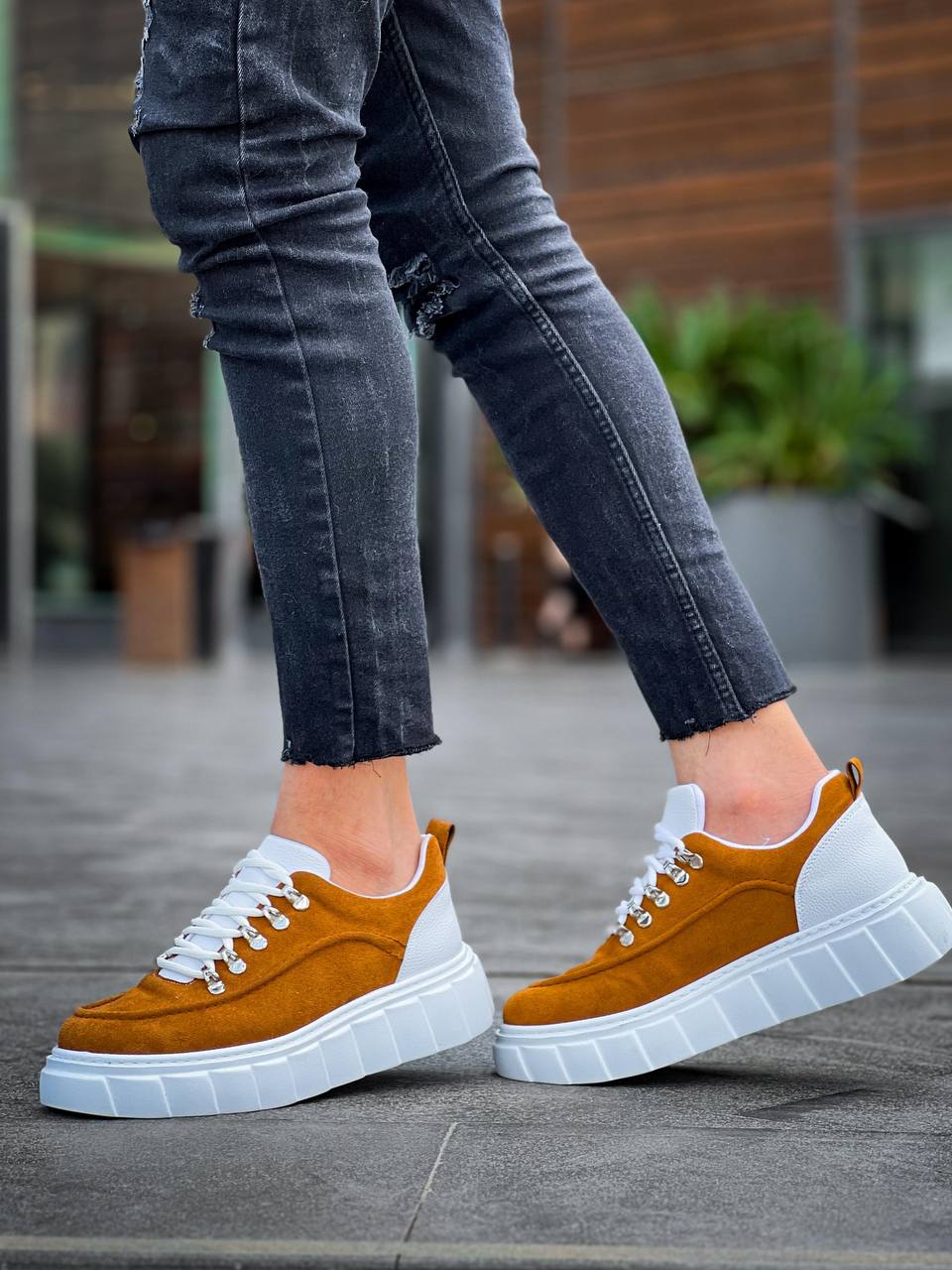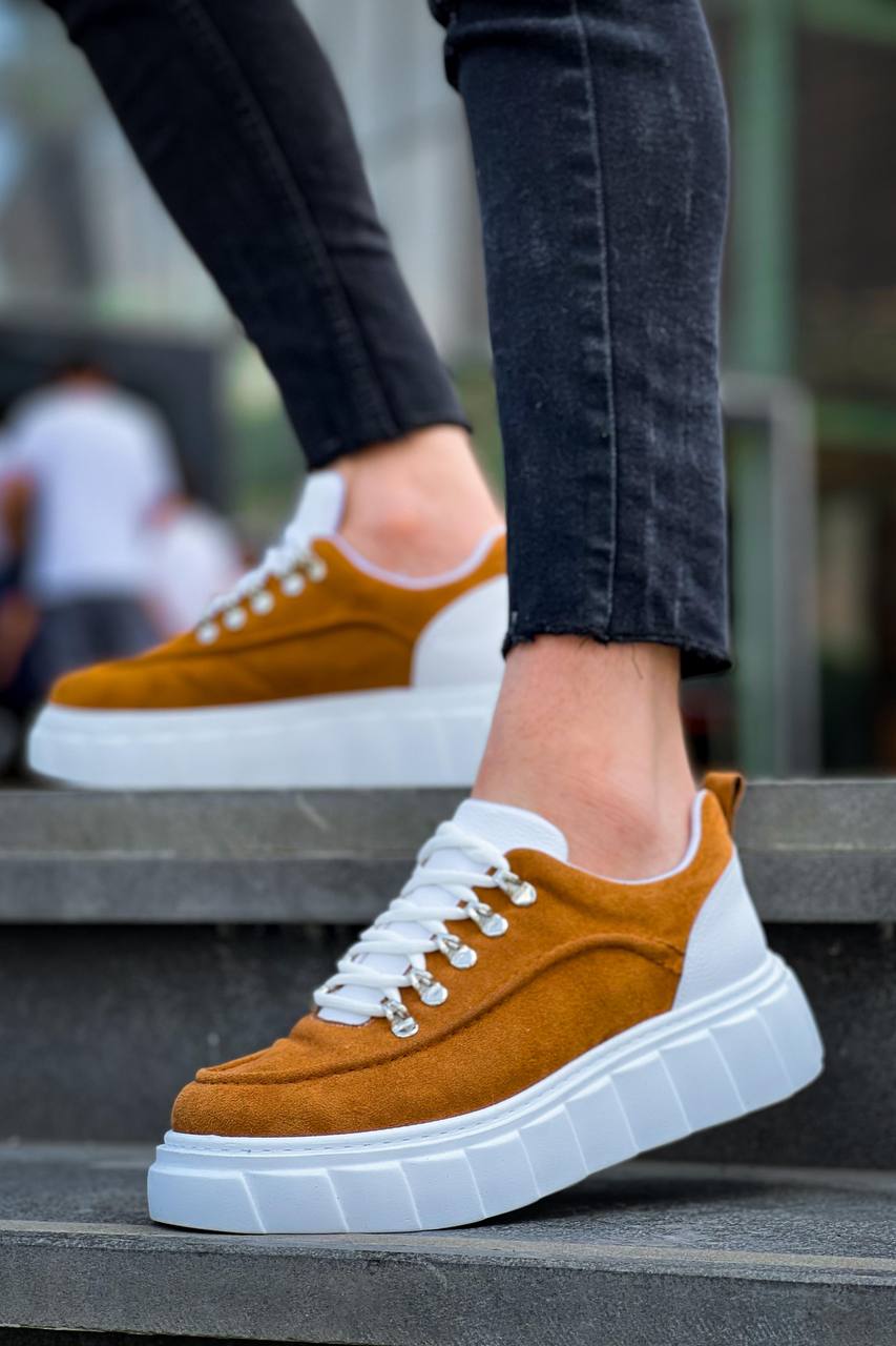 KB-X10 Brown Suede White High Sole Casual Sneakers