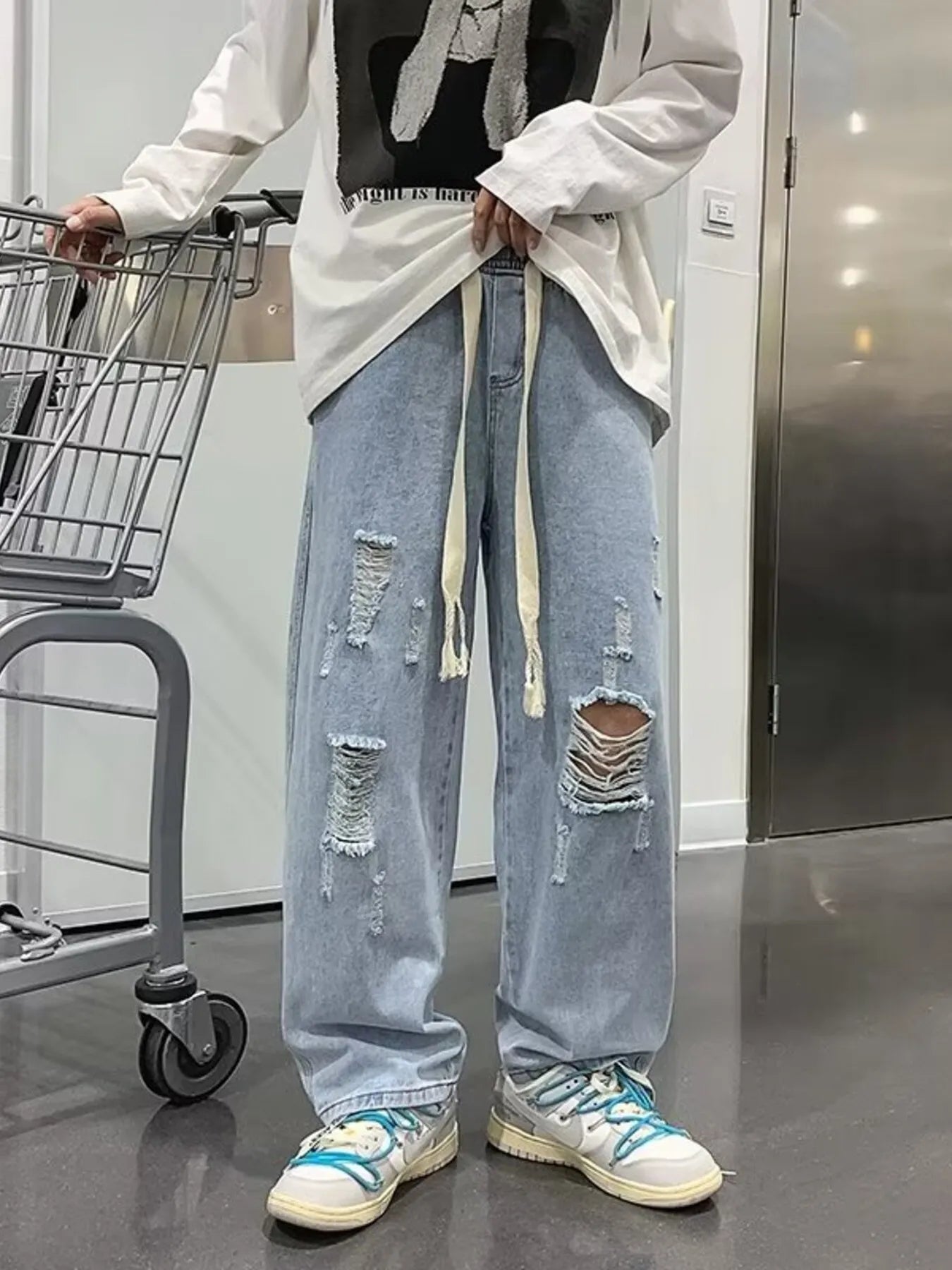 Men's Full Size Distressed Wide Leg Jeans Plus Size