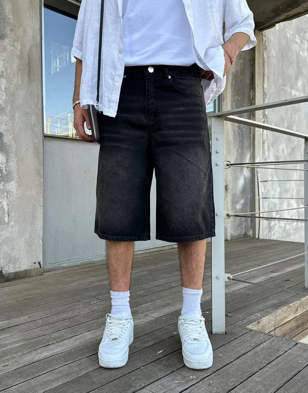 Men's Premium Baggy Long Distressed Denim Shorts
