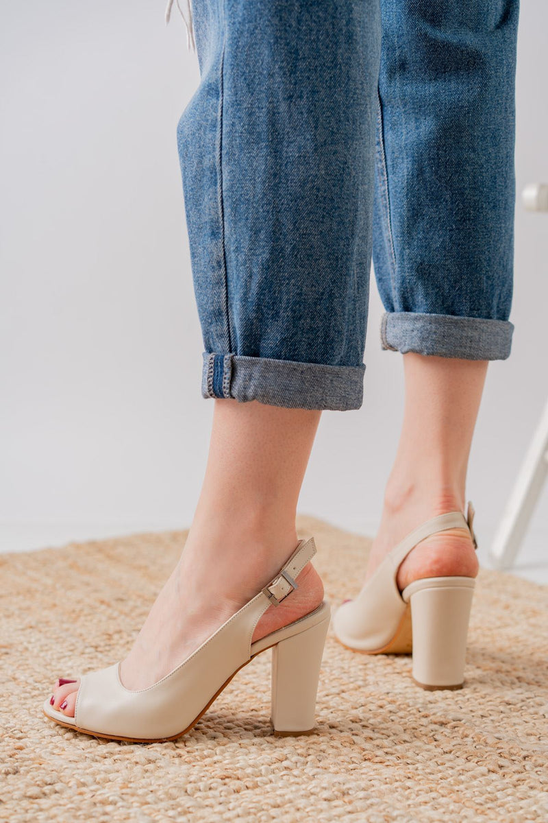 Lottis Cream Suede Detailed Heeled Women's Shoes
