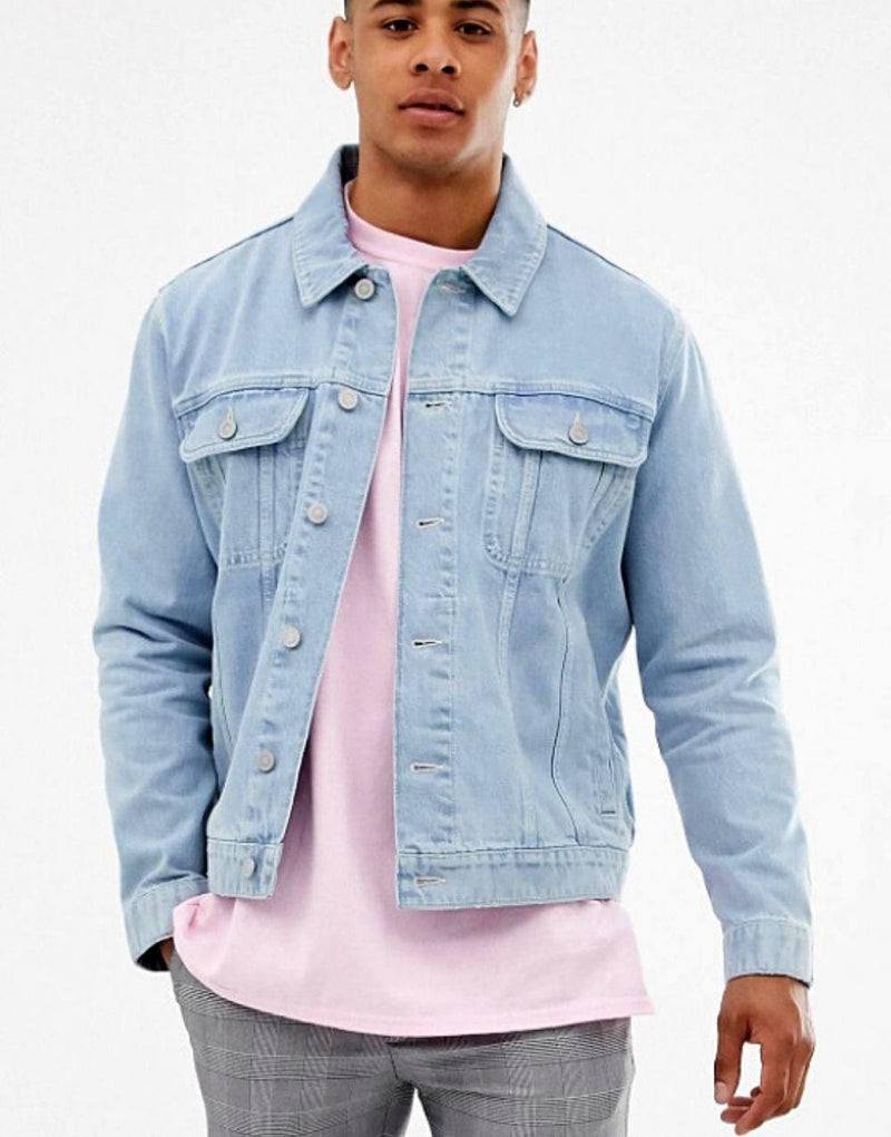 Design Regular Men's Denim Jacket Plain Wash Blue