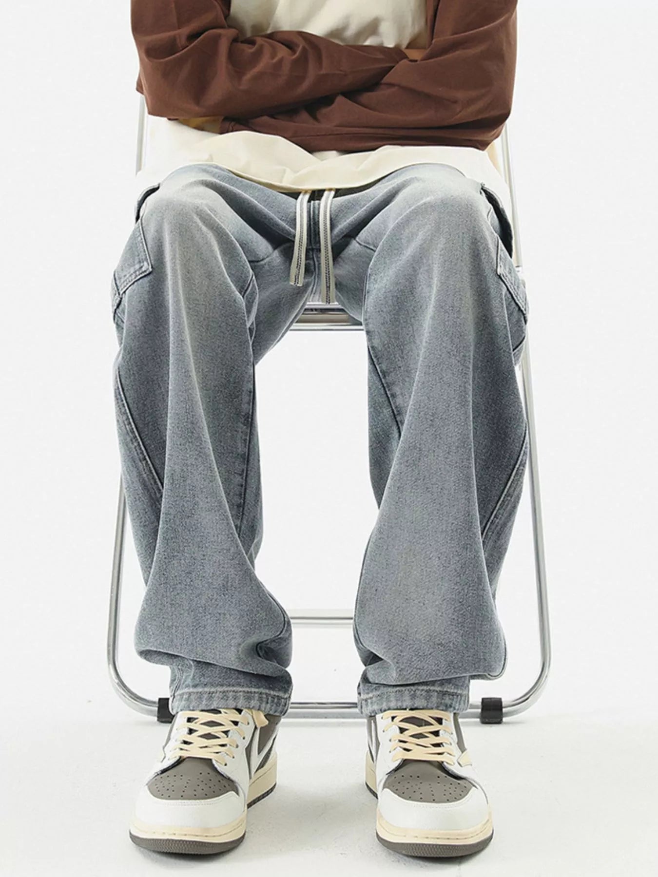 Men's Full Size Wash Relaxed Fit Cargo Jeans Plus Size