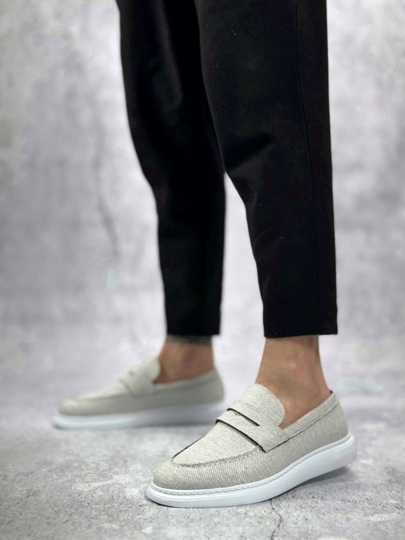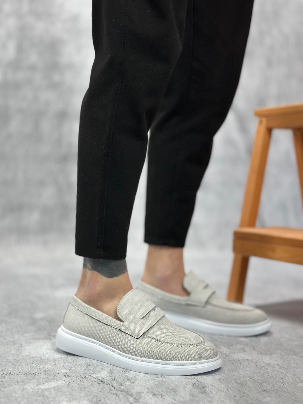 BA0355 Laceless Linen Gray Classic Corcik Men's Shoes