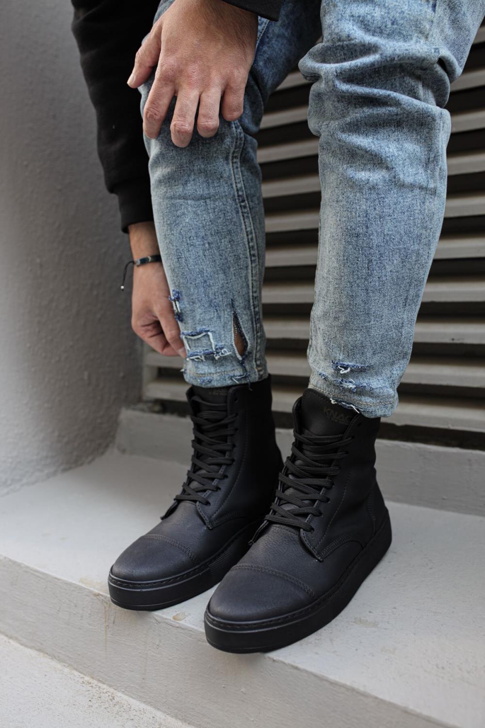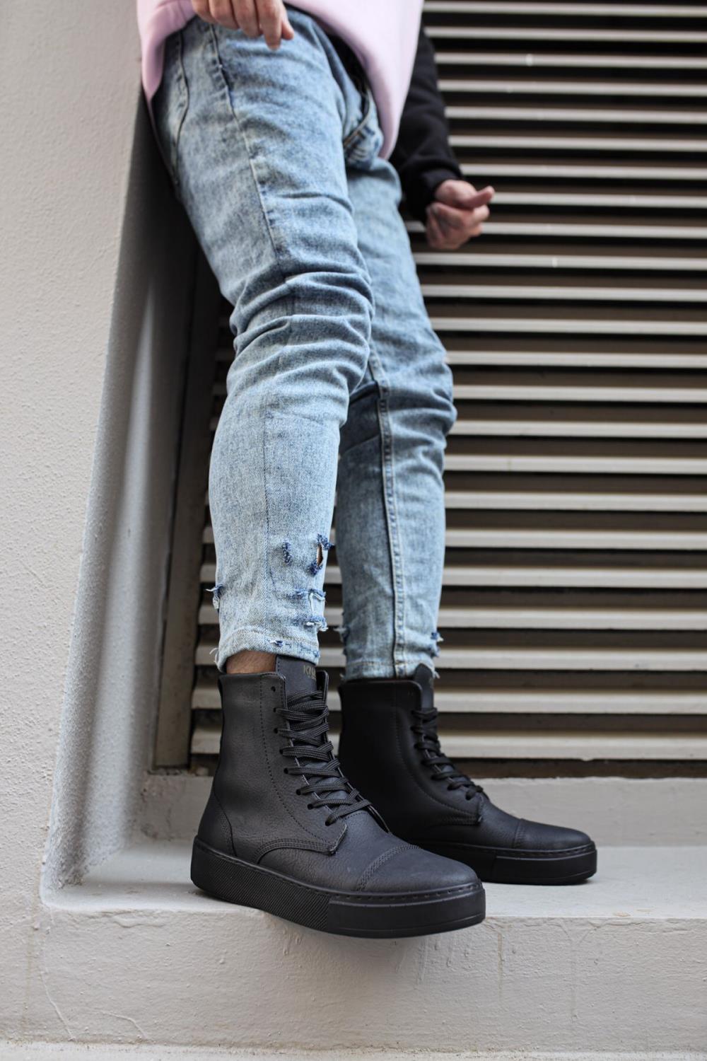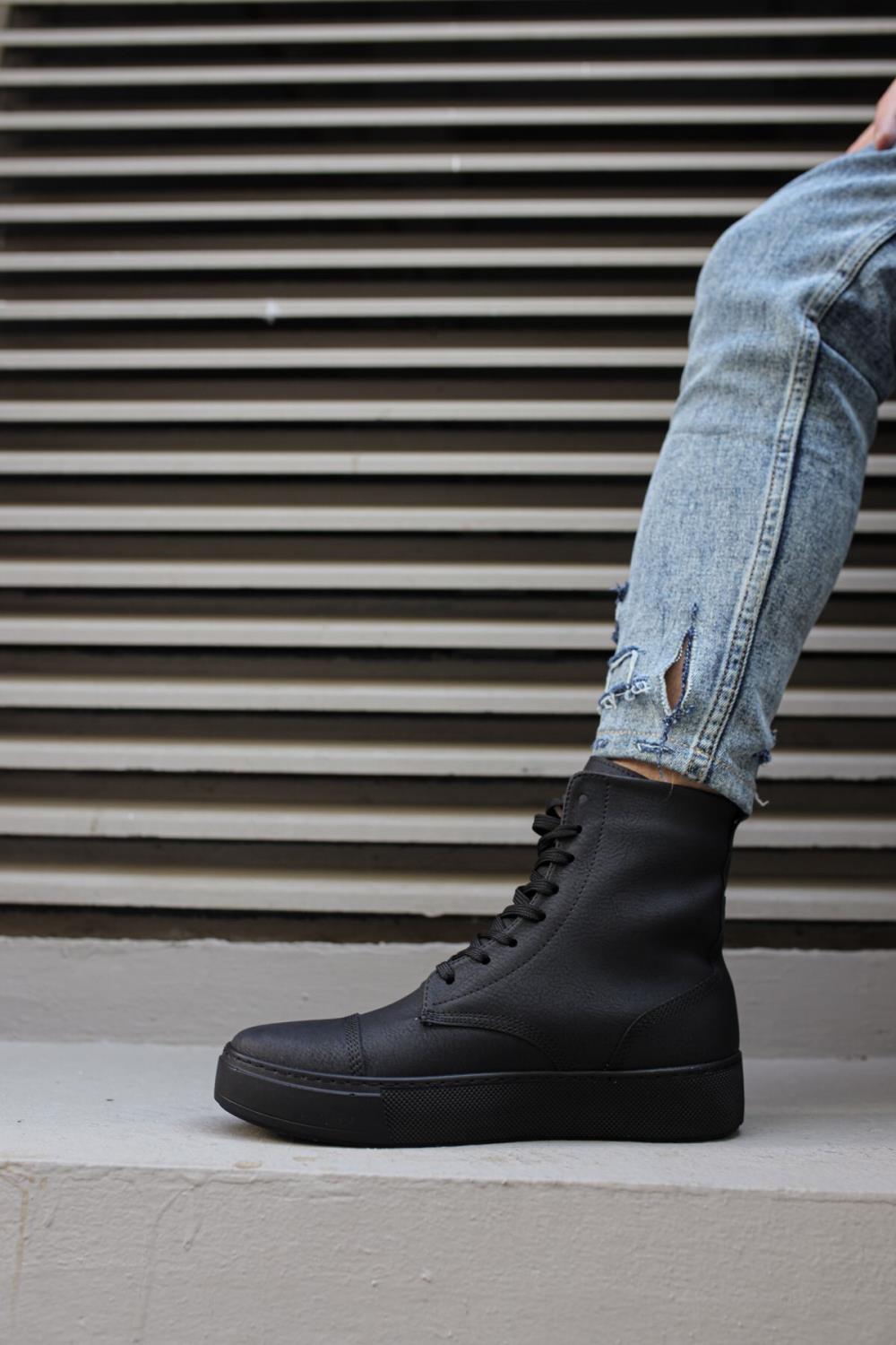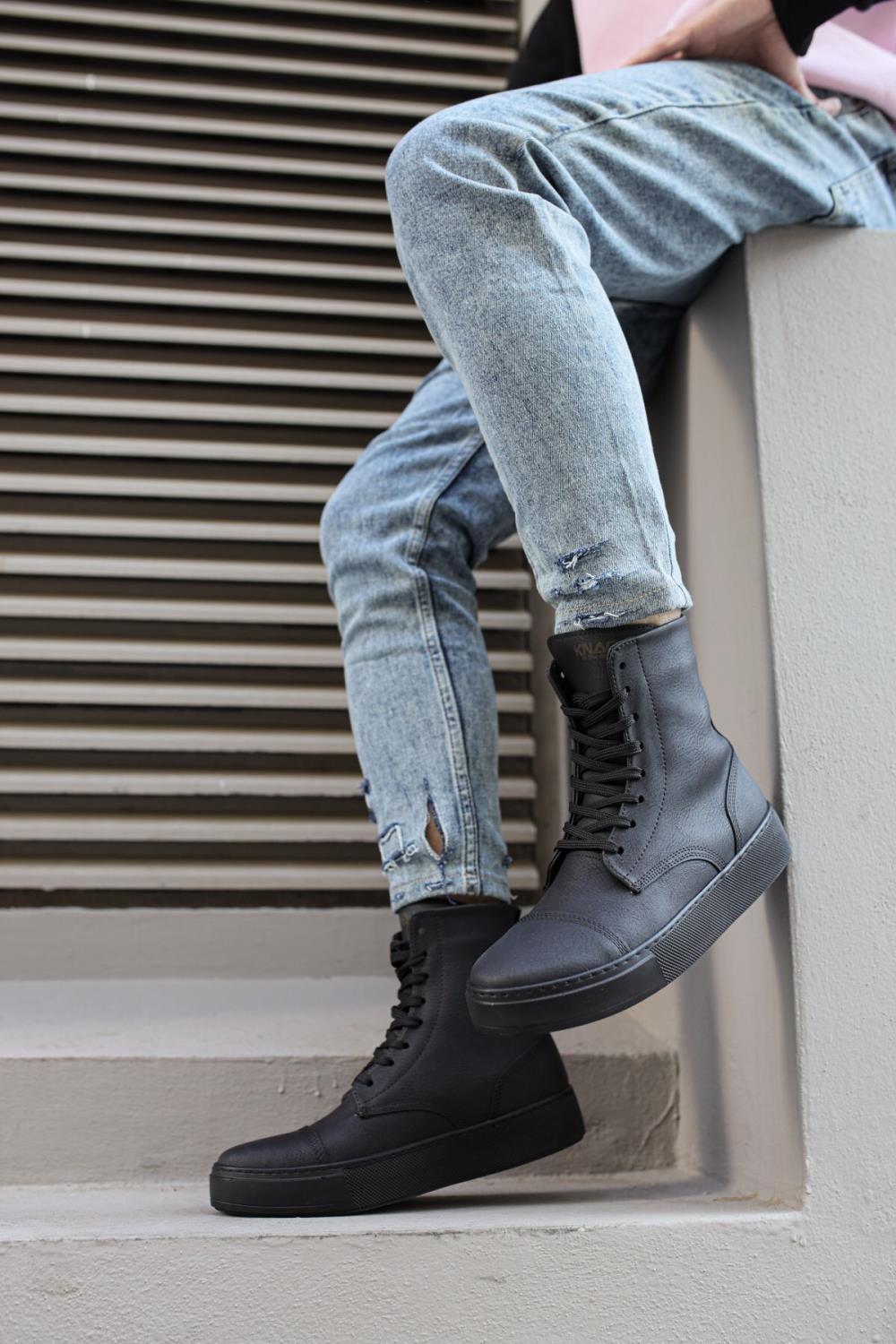 Mens Sneaker Long Sport Military Boots 022 Full Black