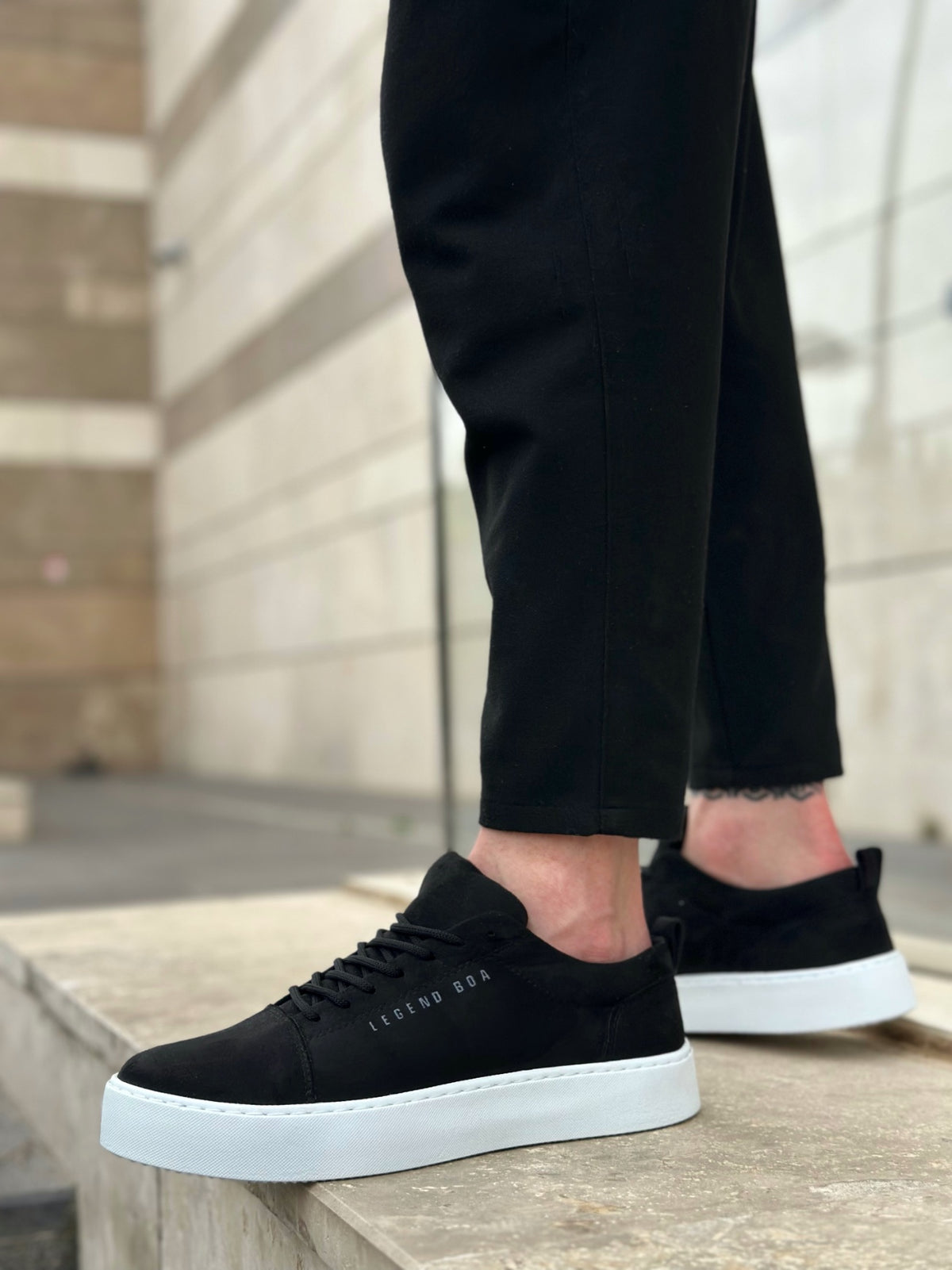 BA0104 Laced Black Suede White Sole Sports Classic Men's Shoes