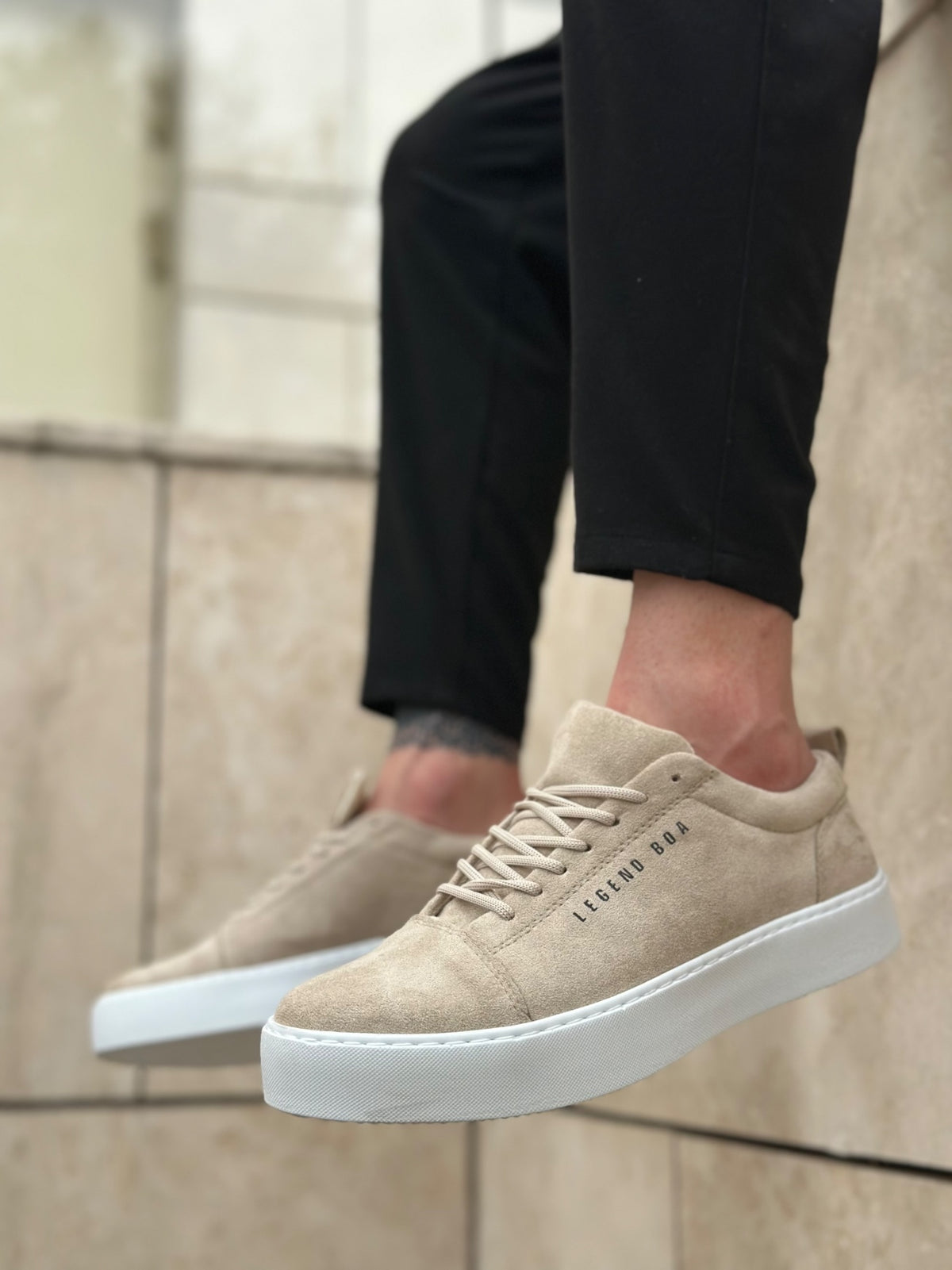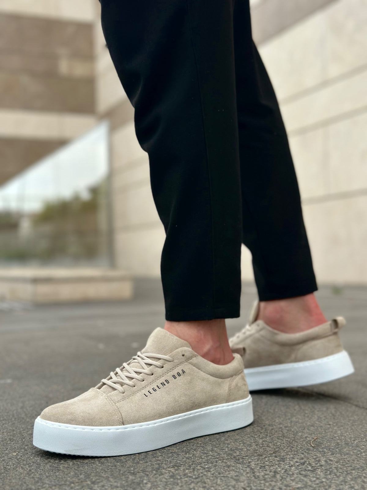 BA0104 Laced Cream Suede White Sole Sports Classic Men's Shoes