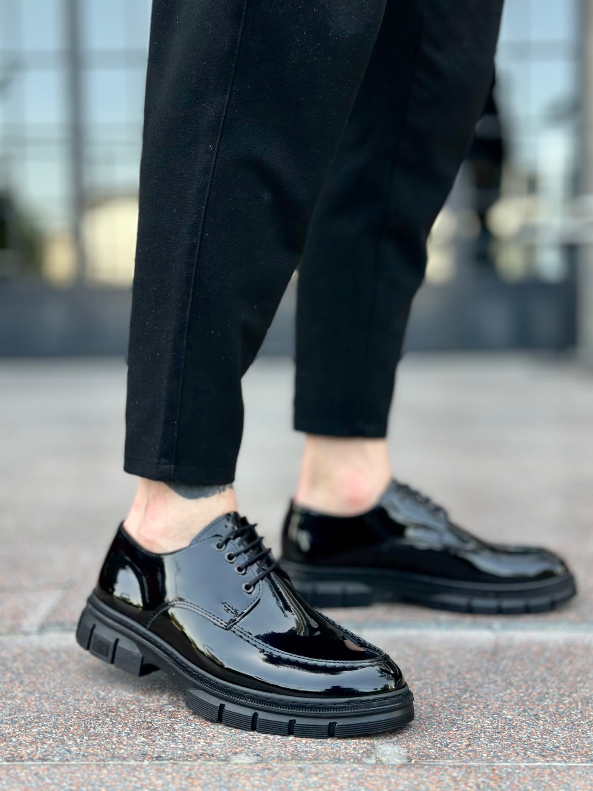 BA0237 Laced Patent Leather Classic High Sole Casual Men's Shoes