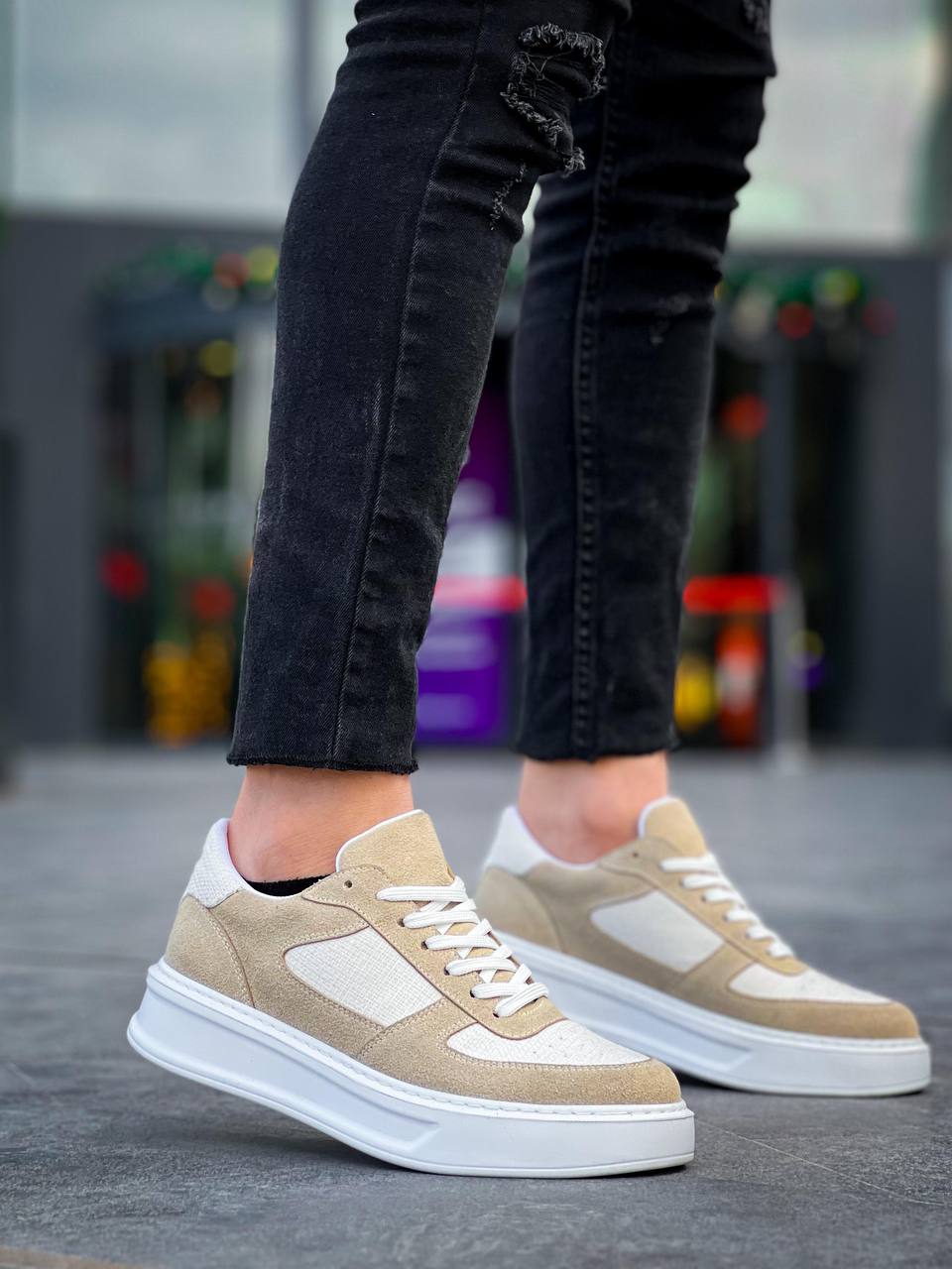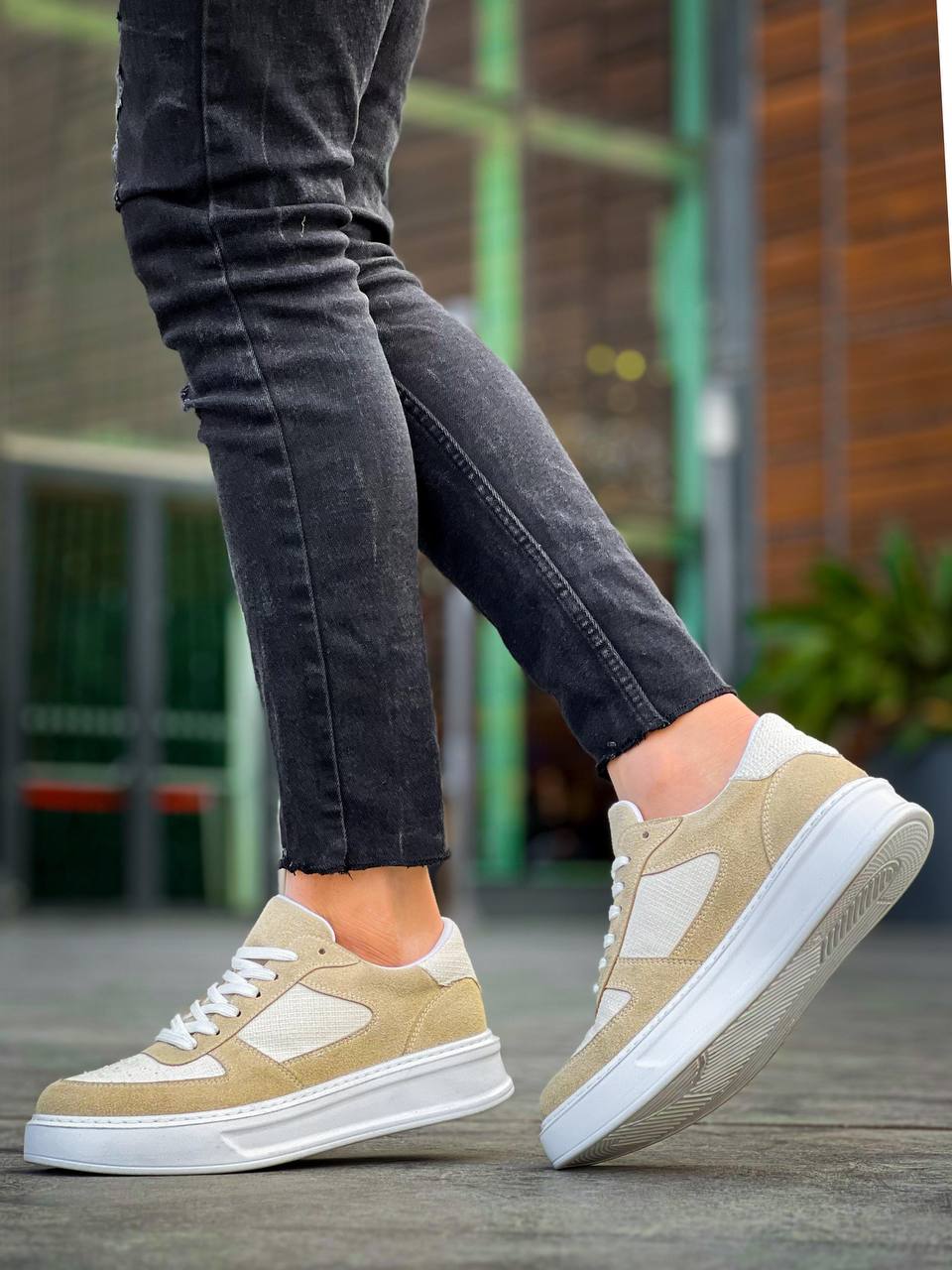 KB-X8 Beige Linen Suede High Sole Casual Sneakers
