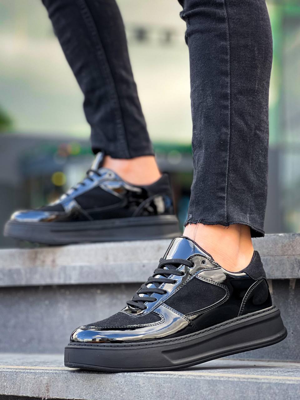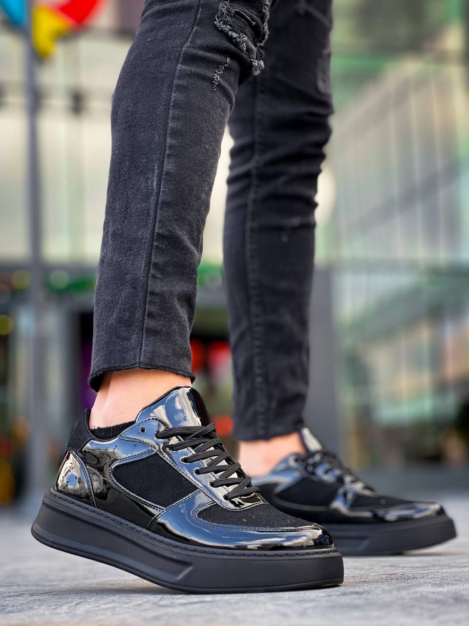 KB-X8 Black Patent Leather High Black Sole Casual Sneakers