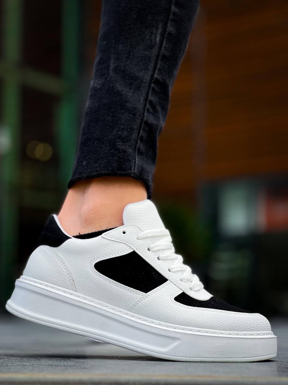 KB-X8 White Black Skin High Sole Casual Sneakers