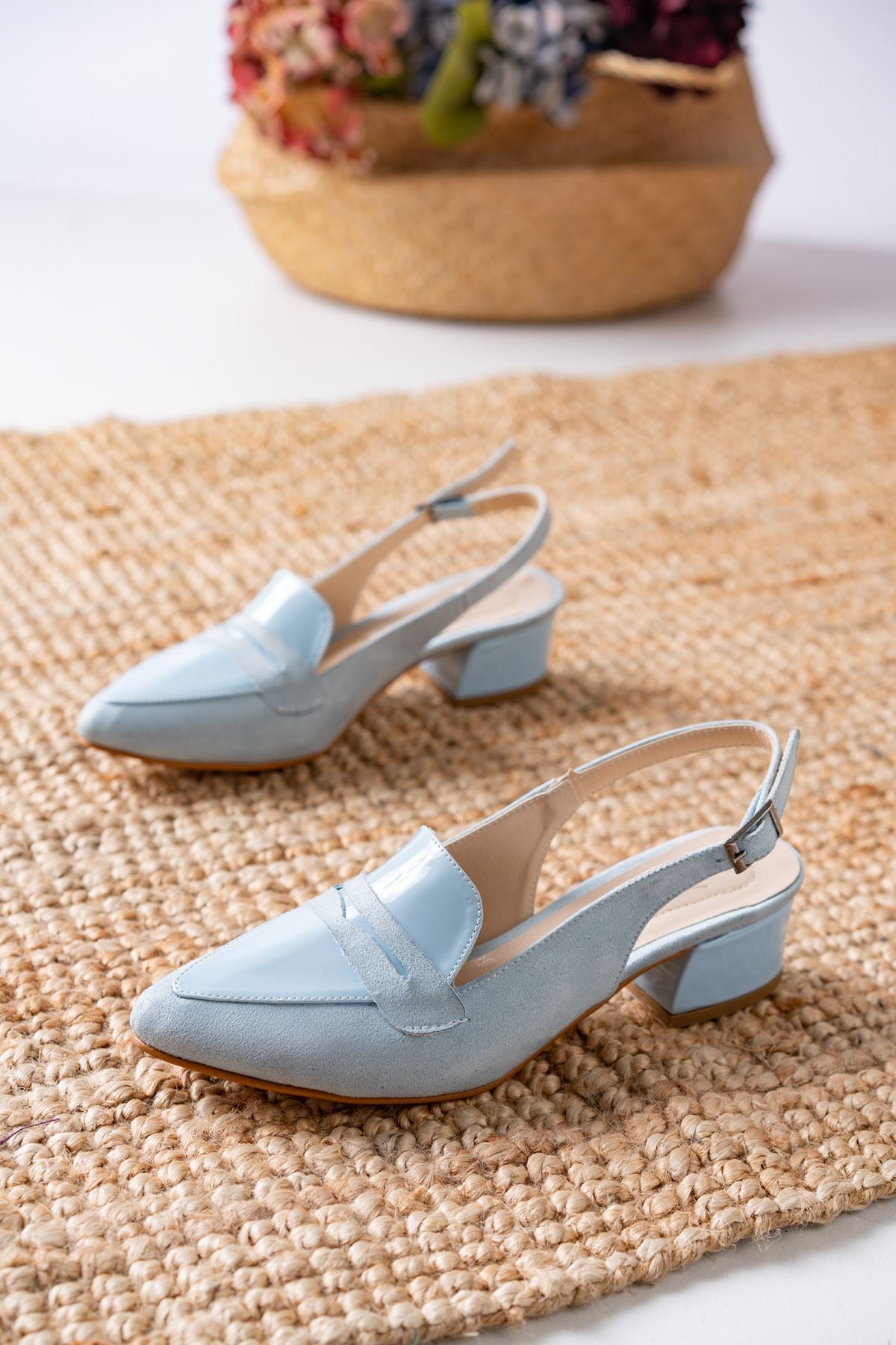 Bert Baby Blue Patent Leather - Suede Pointed Toe Low Heels Women's Shoes