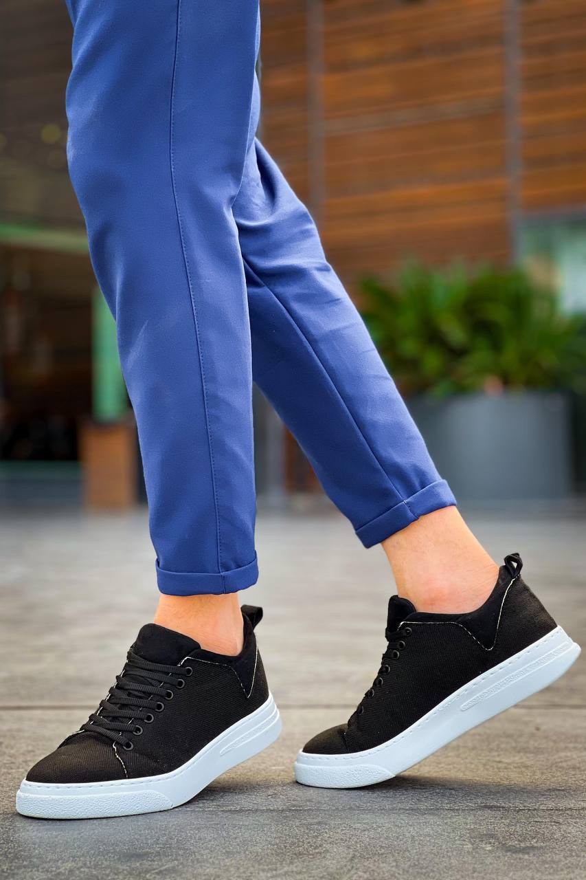 KB-X204 Black Linen White High Sole Casual Men's Sneakers