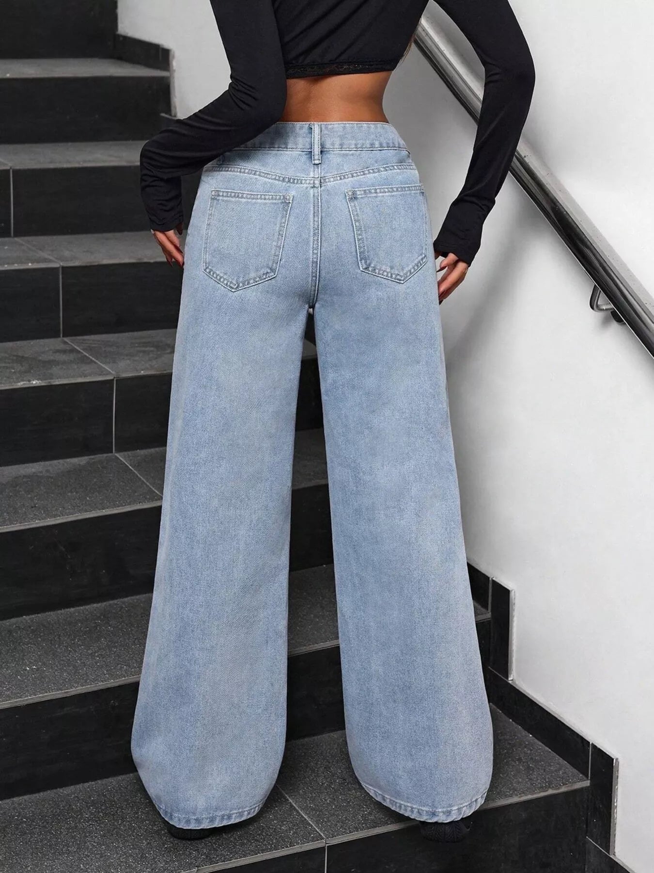 Woman Bow-Embellished Wide Leg Jeans