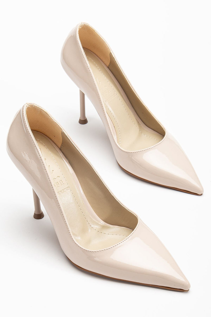Women's High Heel Shoes Beige Patent Leather Stiletto