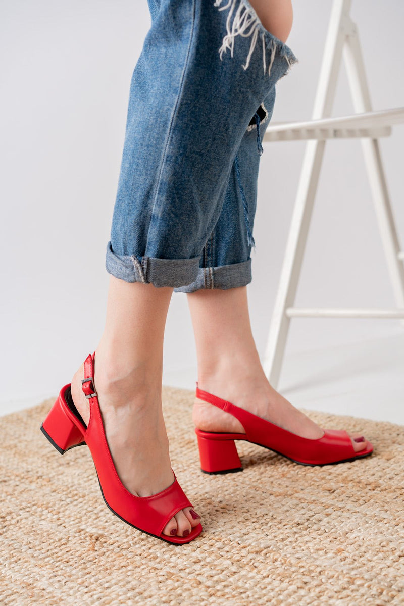 Eriola Red Skin Detail Low Heel Women's Shoes