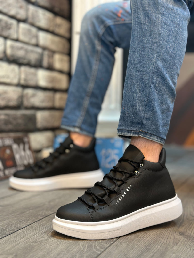 BA0713 Lace-Up High Black White Sole Men's Style Sports Boots